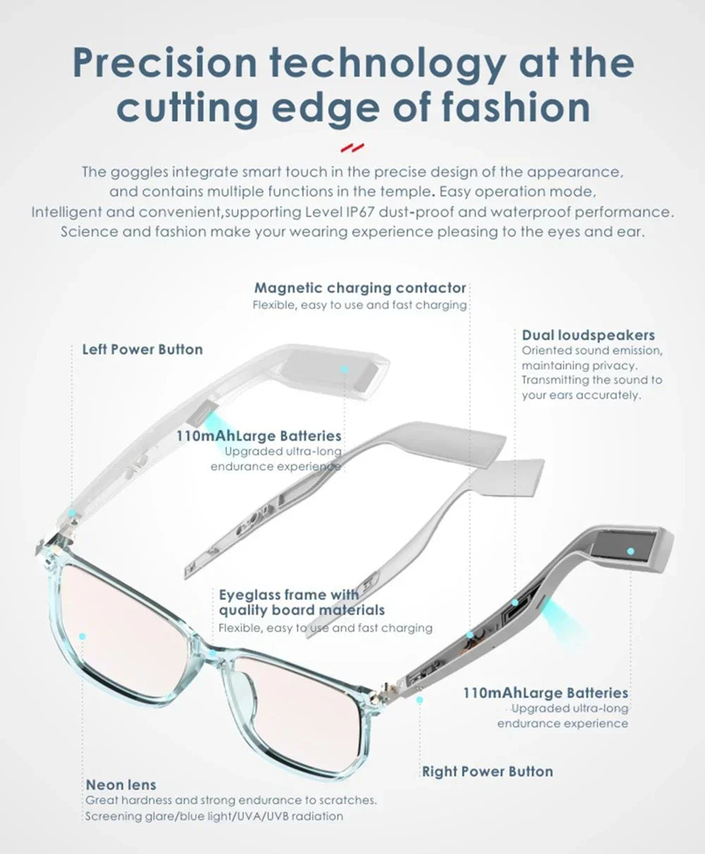 • Smart Bluetooth Audio Gaming Eyeglasses