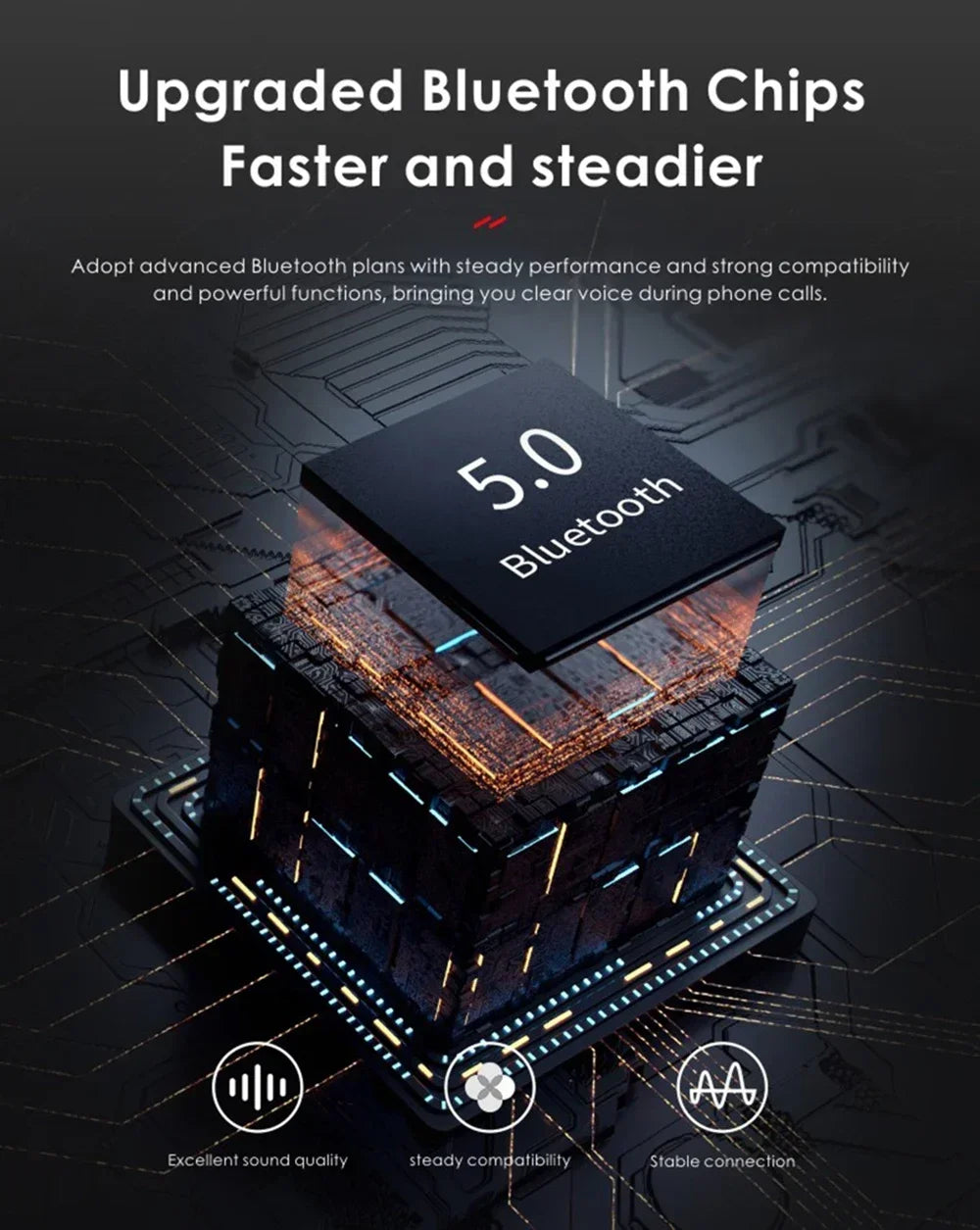 • Bluetooth 5.0 Connectivity: Enjoy seamless connection with all Bluetooth-enabled devices, including iOS and Android smartphones, for smooth streaming and calling.