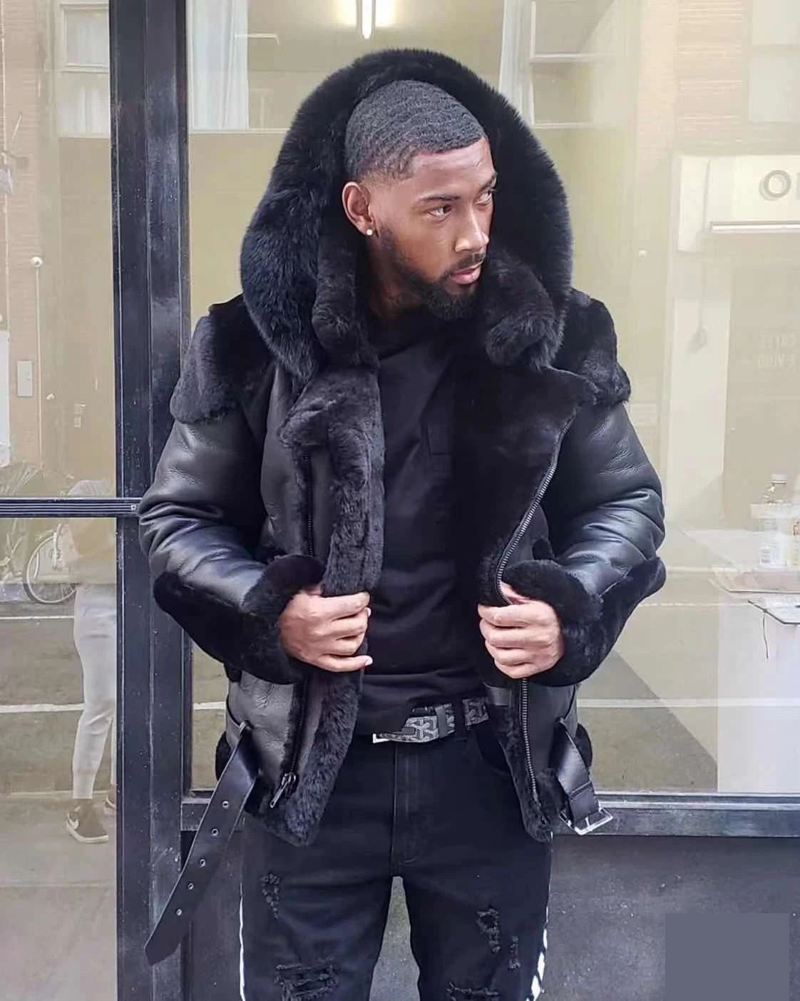 Introducing the 2024 New Men's Leather Coat, designed for those who value both comfort and fashion. This jacket is perfect for winter, combining a luxurious fur collar with a long sleeve wool lining to keep you warm and stylish.