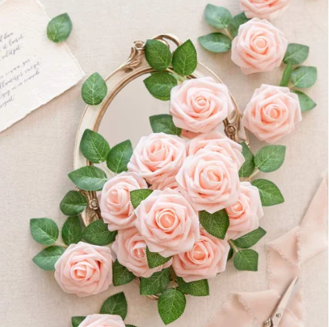 25pcs Real‑Looking Artificial Roses – Soft PE Foam Flower Heads for DIY Wedding Bouquets, Party Décor, Baby Shower & Home Arrangements