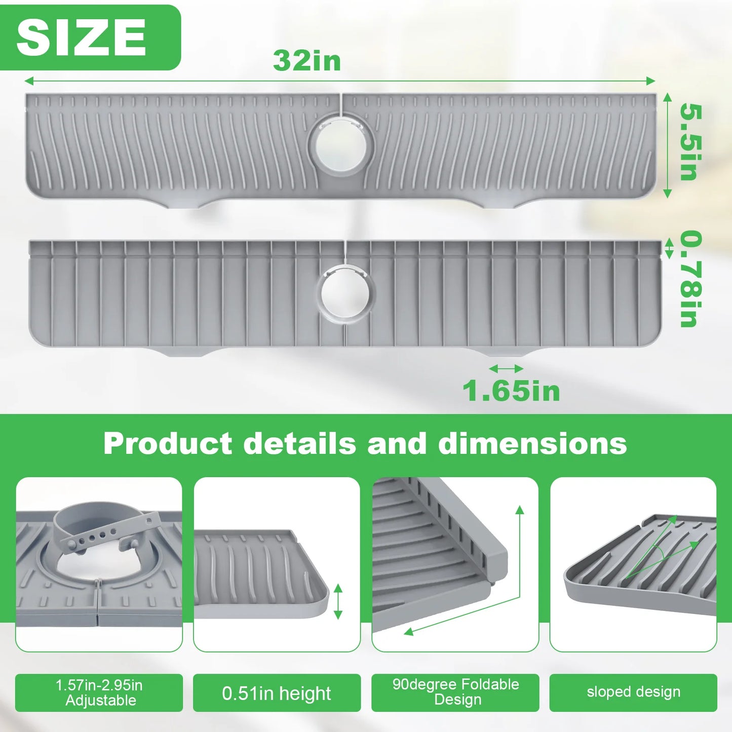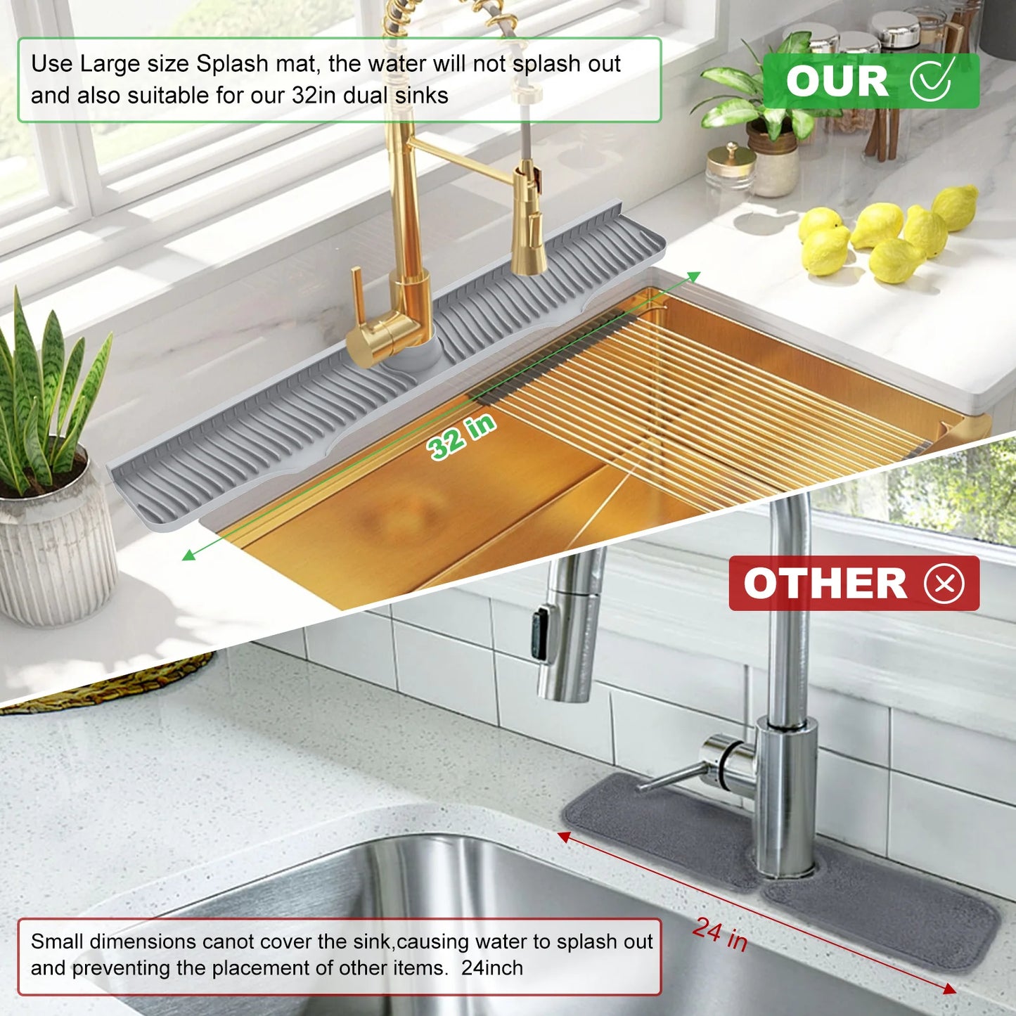 Introducing the 32-inch Silicone Sink Faucet Splash Guard β the ultimate solution to keeping your kitchen, bathroom, or bar countertops dry and spotless!