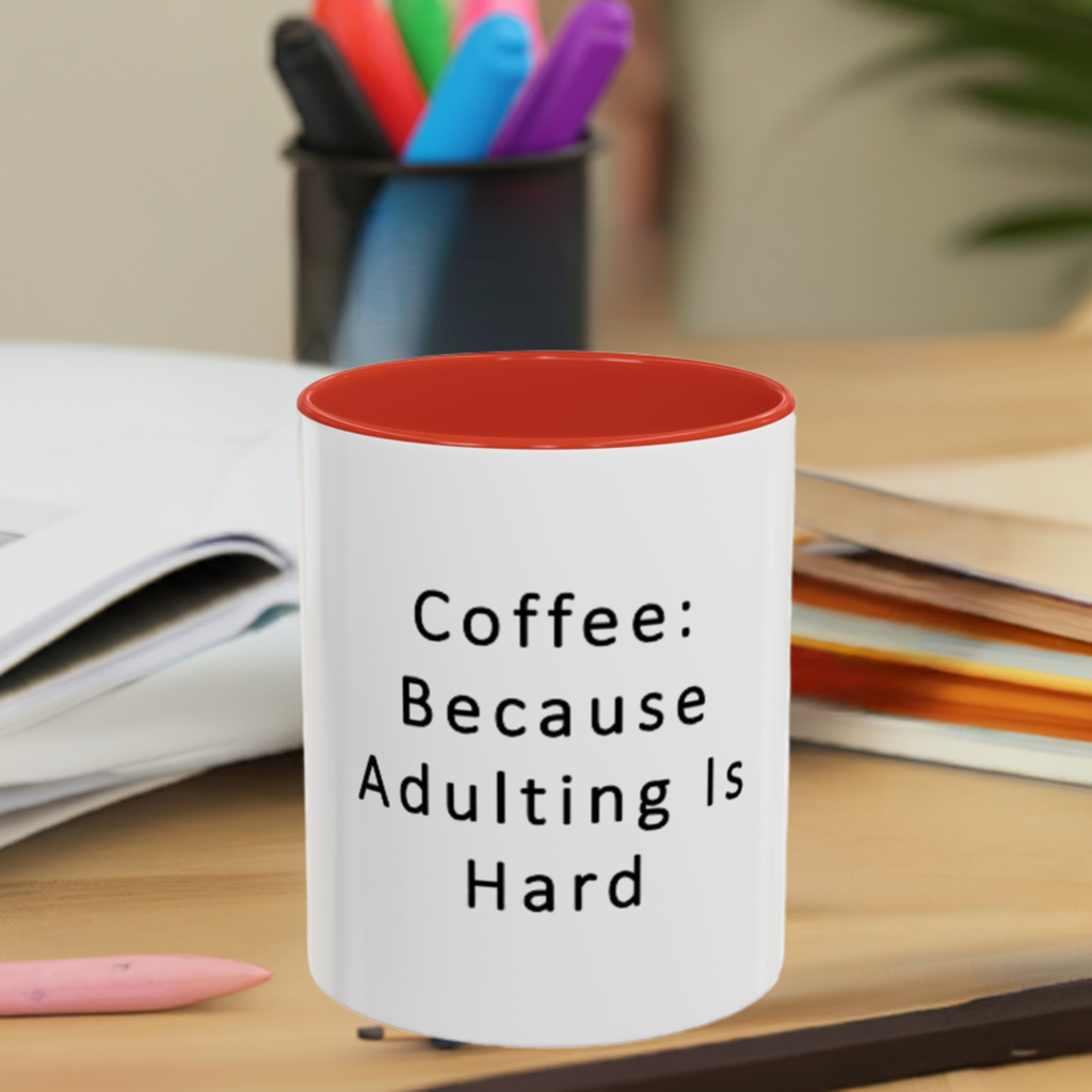 "Coffee: Because Adulting Is Hard" Accent Coffee Mug (11, 15oz)