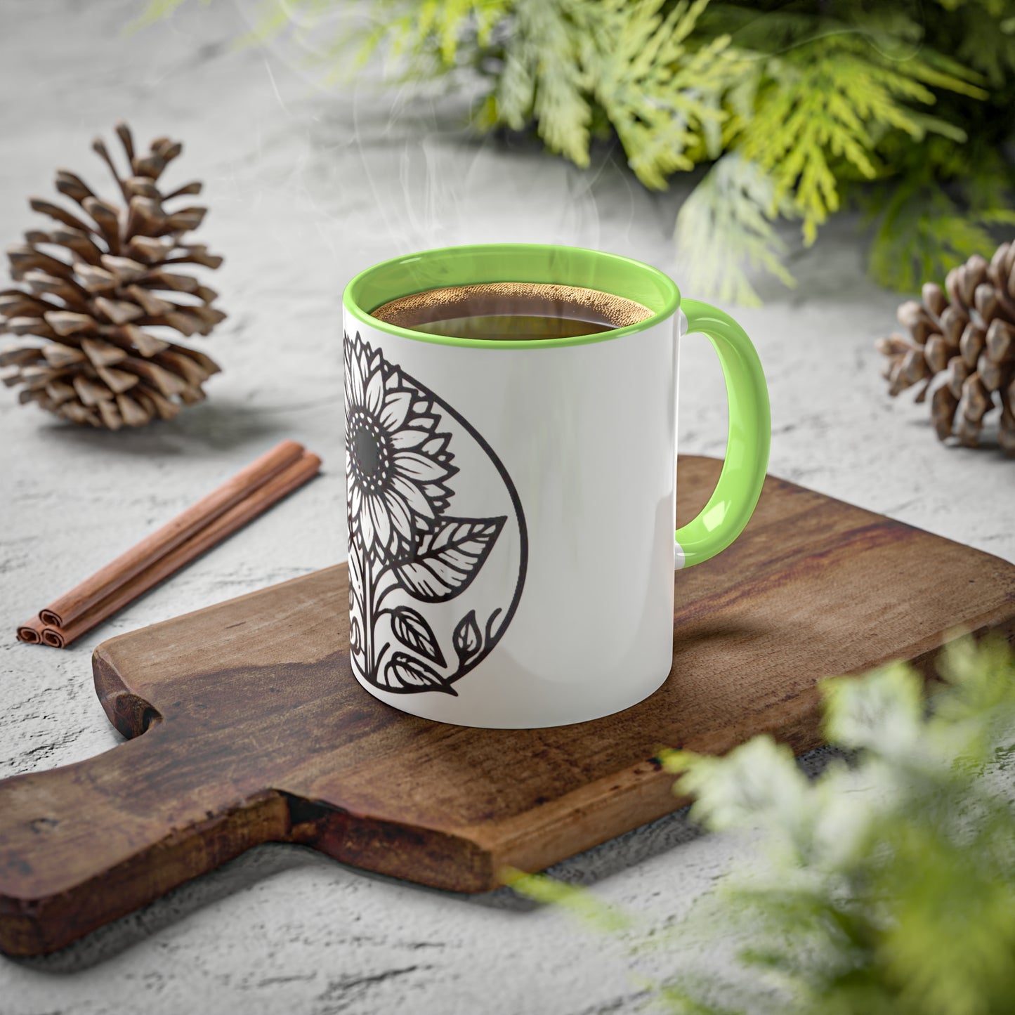 "White Sunflower" Colorful Mugs, 11oz