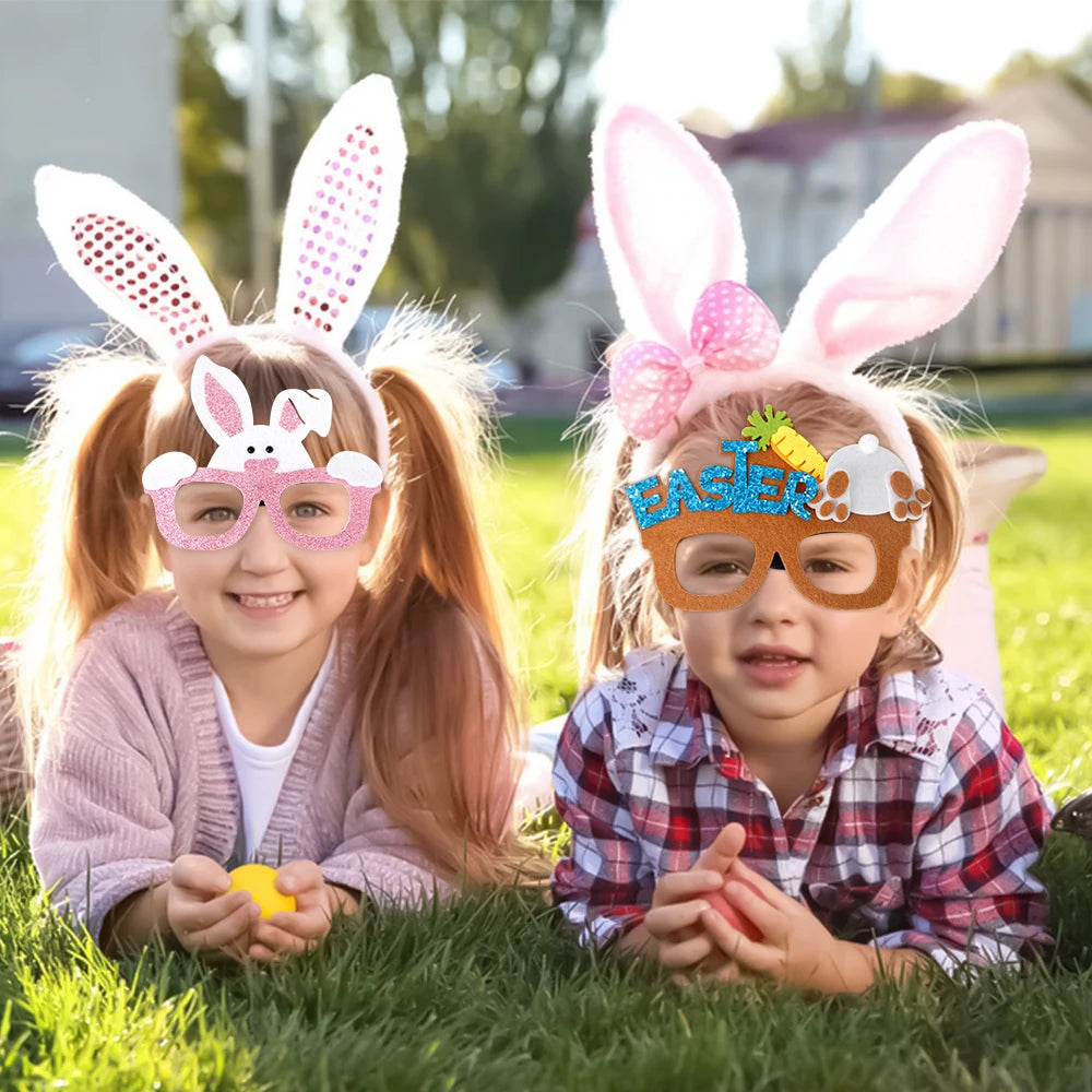 Easter Funny Glasses Props – Kids’ Cartoon Bunny & Eggshell Eyeglass Frames, Non‑Woven Fabric Easter Party Decorations & Gifts