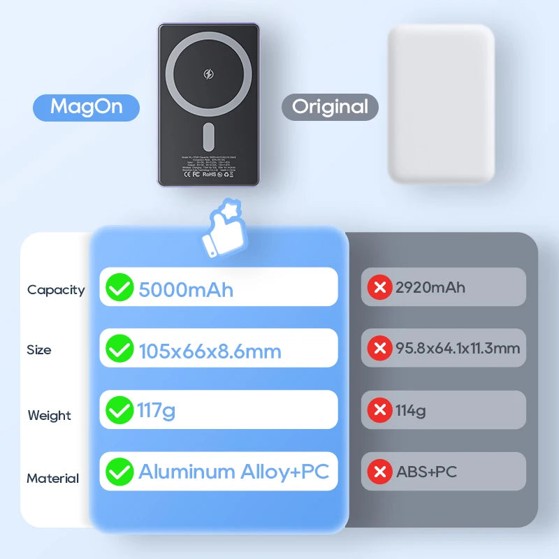 Introducing the Magsafe Power Bank – the sleek, metal-encased lifeline for your iPhone. With a 5000mAh capacity and 20W fast charging, it’s the ultimate accessory for the modern mobile user.