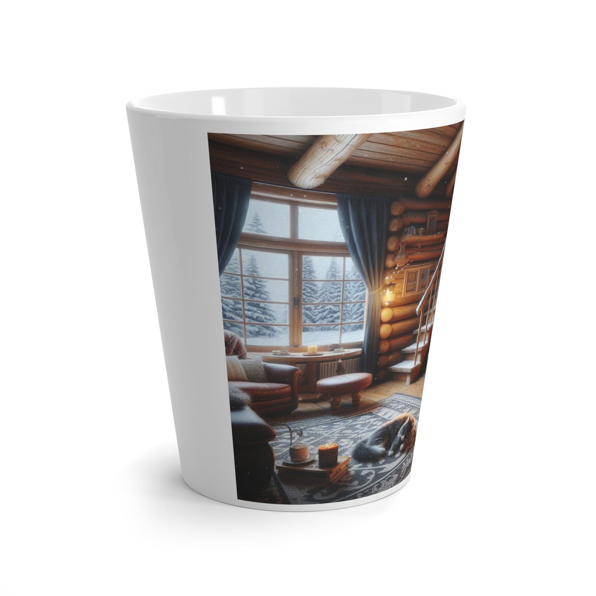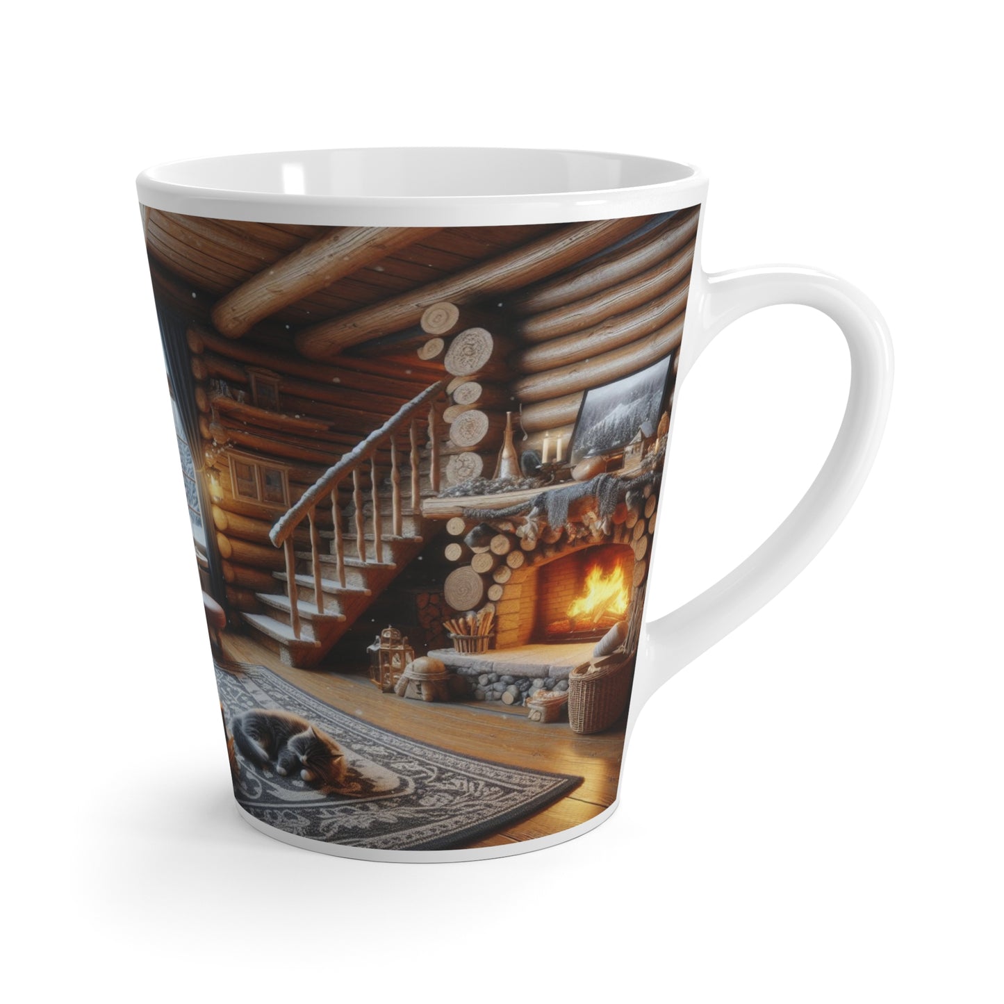 Introducing our classic bestseller, the Log Cabin Mug, designed for those who believe there’s nothing better than enjoying your favorite beverage in a cozy setting. Featuring the inviting interior of a log cabin home, complete with a crackling fireplace and a dog laying comfortably on the floor, this mug captures the essence of relaxation and comfort.