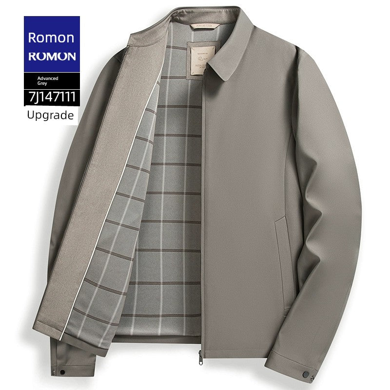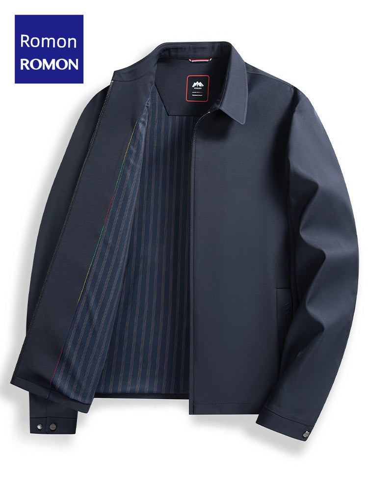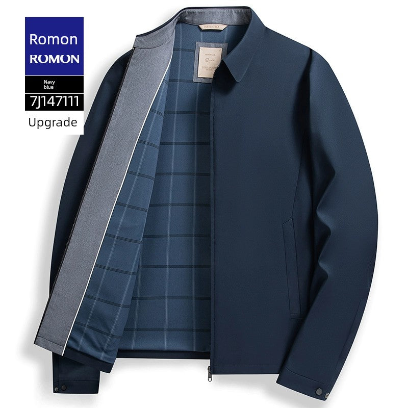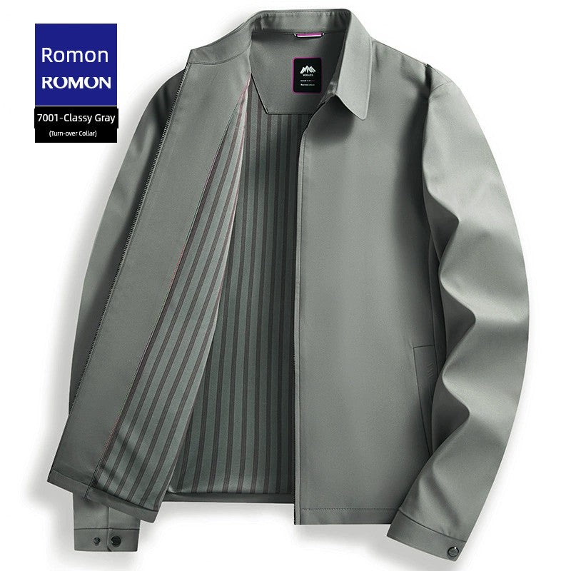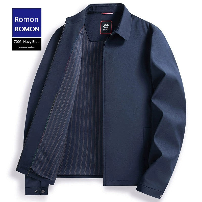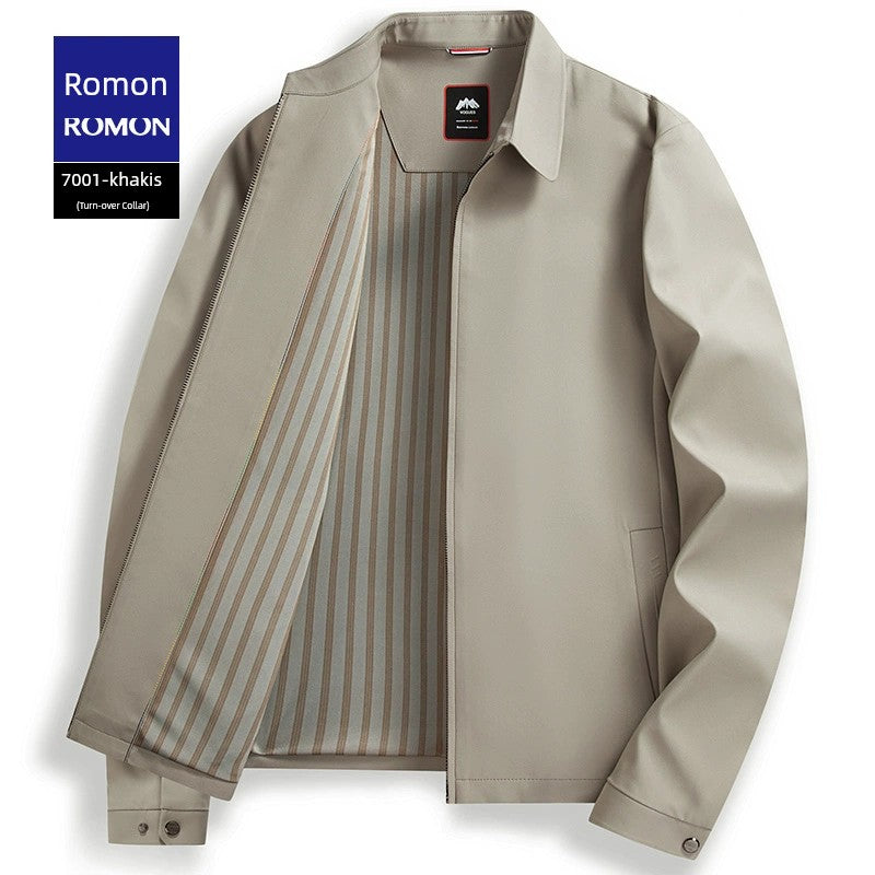 Step into spring with the Executive Stand Collar Jacket—a sophisticated blend of business and leisure, perfect for the modern dad. This jacket combines a classic aesthetic with contemporary style elements, making it a versatile addition to any wardrobe.