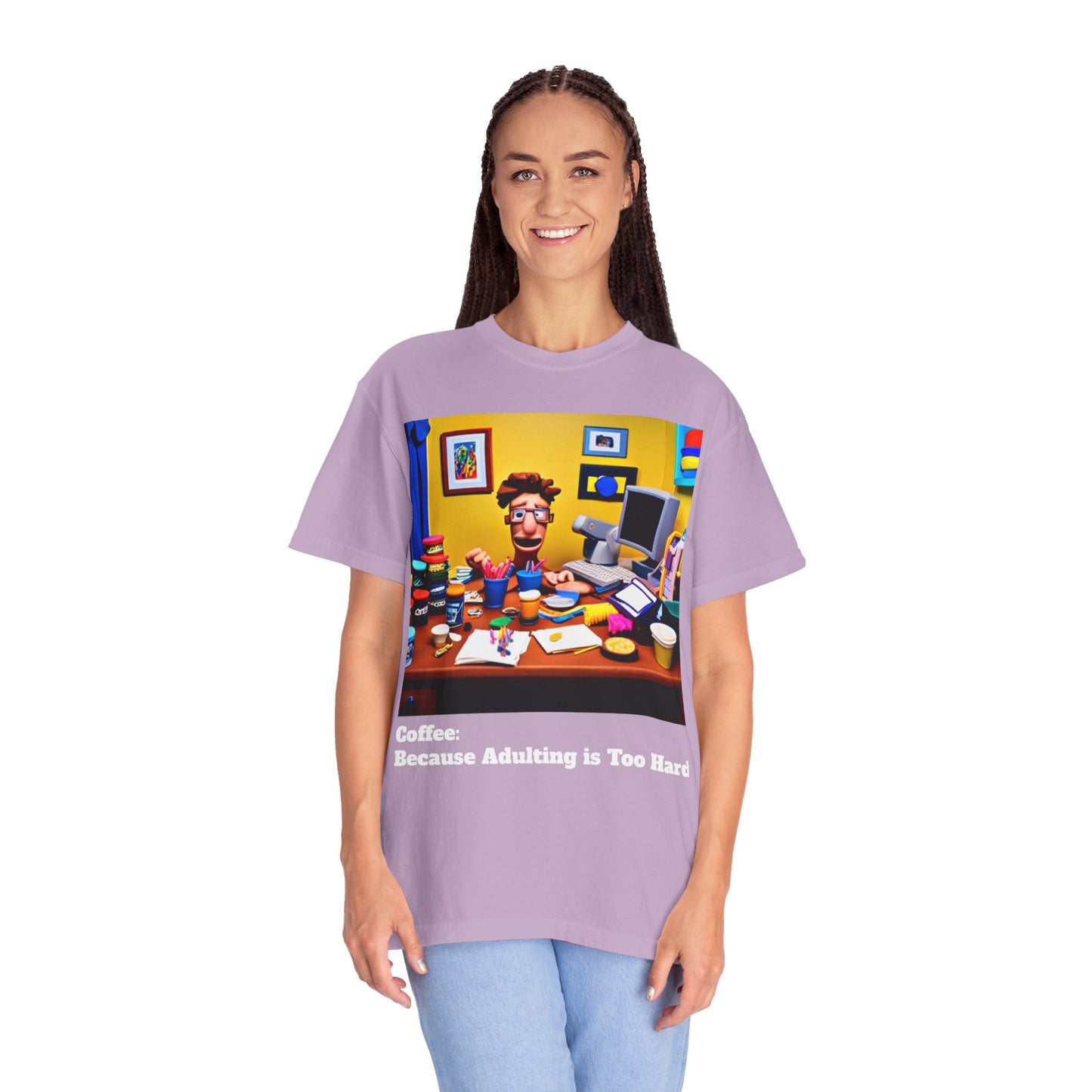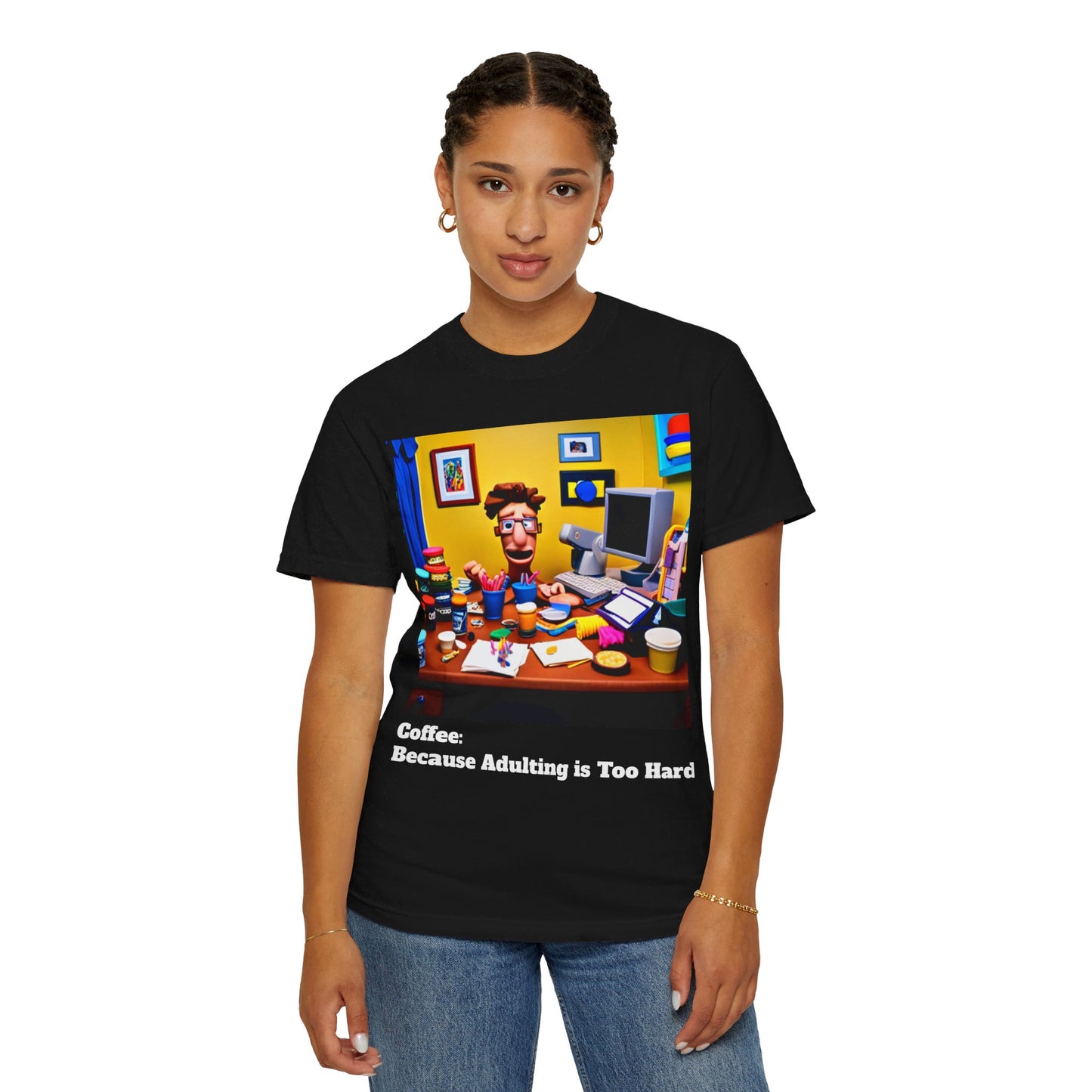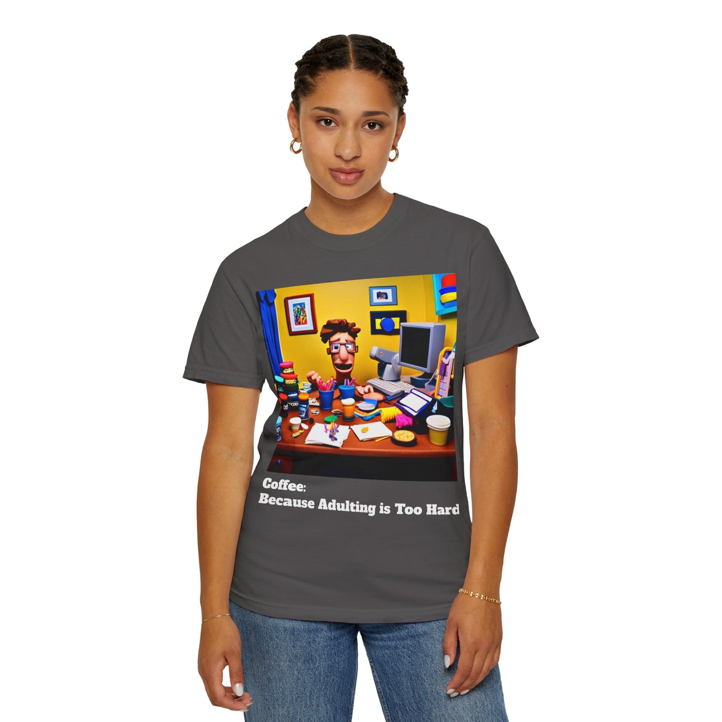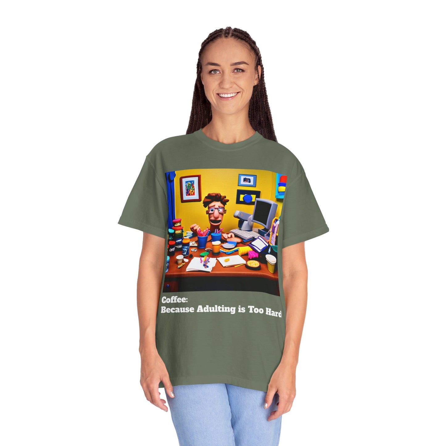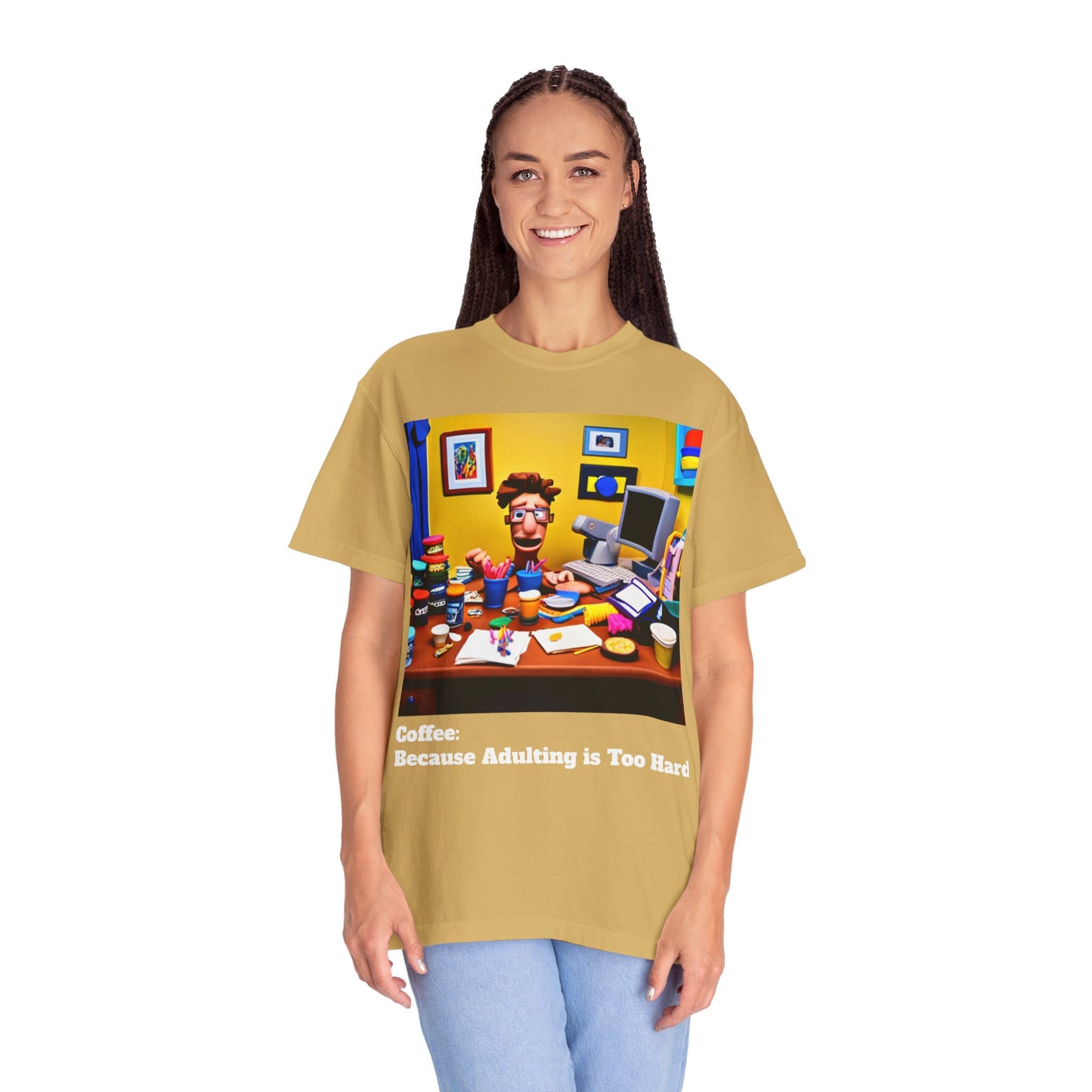 Unisex "Coffee: Because Adulting is Too Hard" Garment-Dyed T-shirt