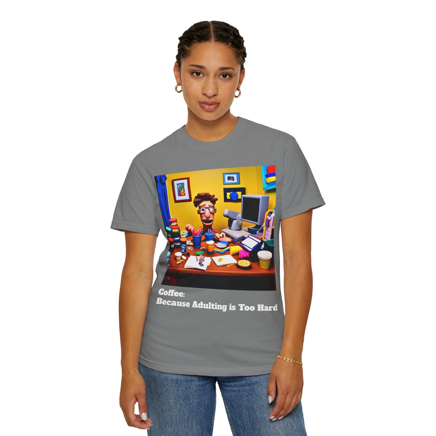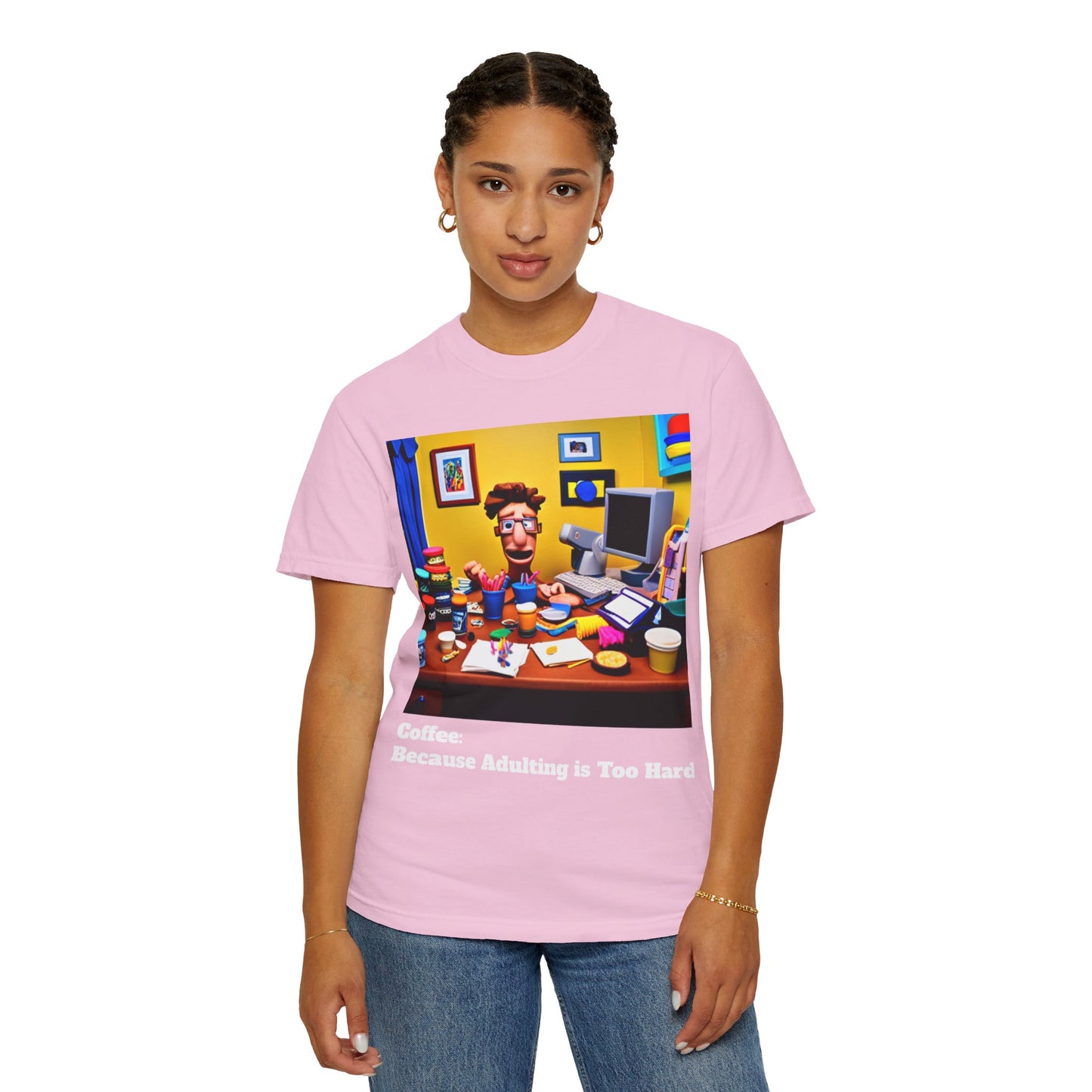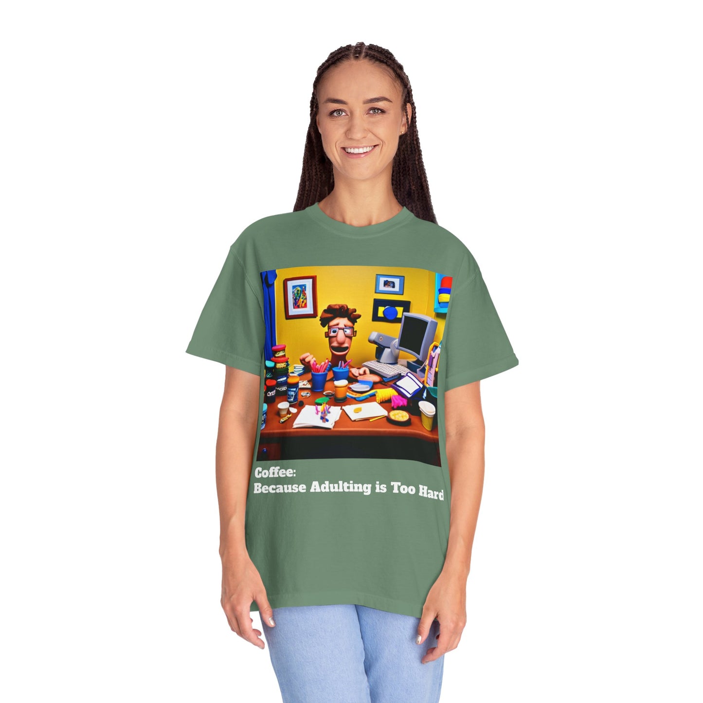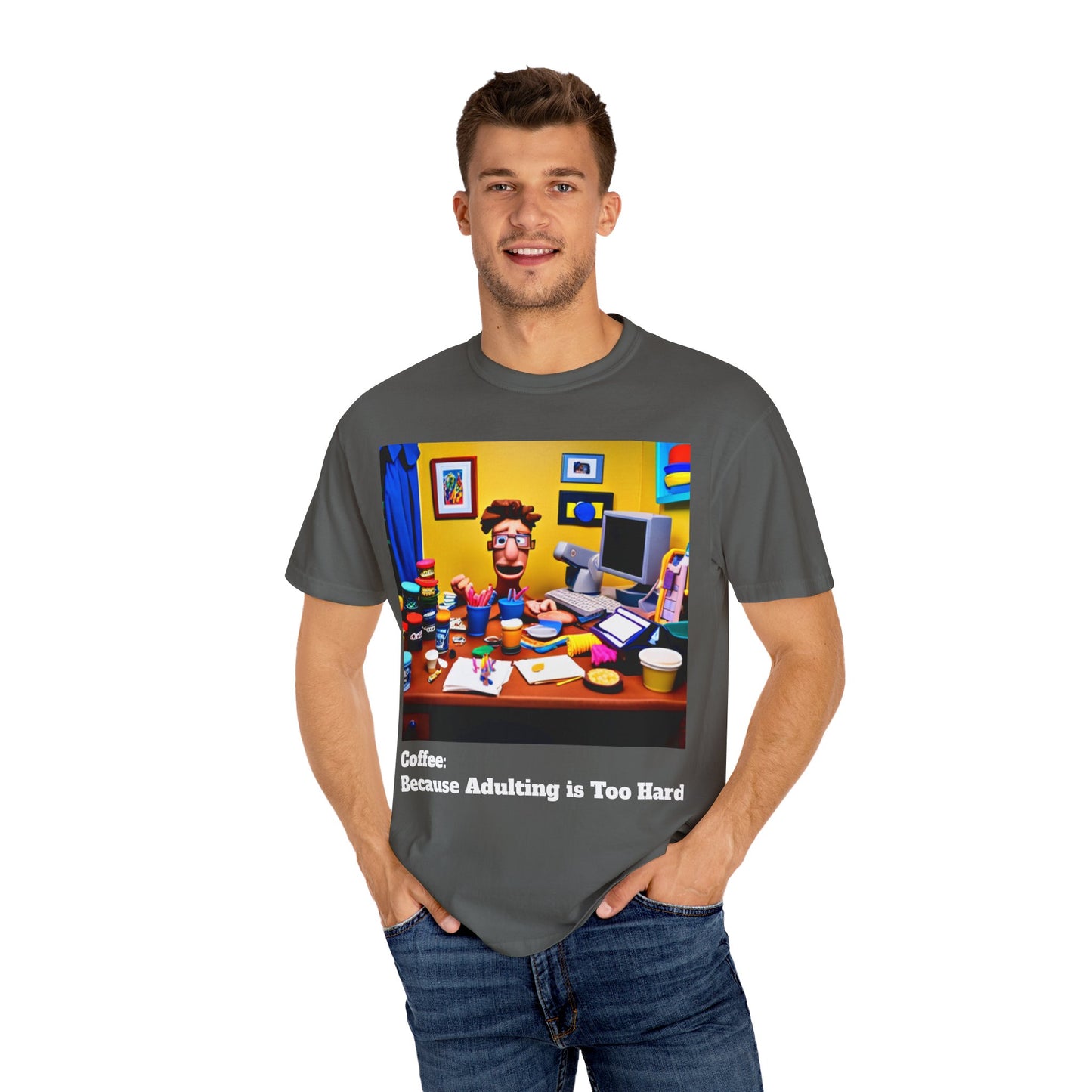 Unisex "Coffee: Because Adulting is Too Hard" Garment-Dyed T-shirt