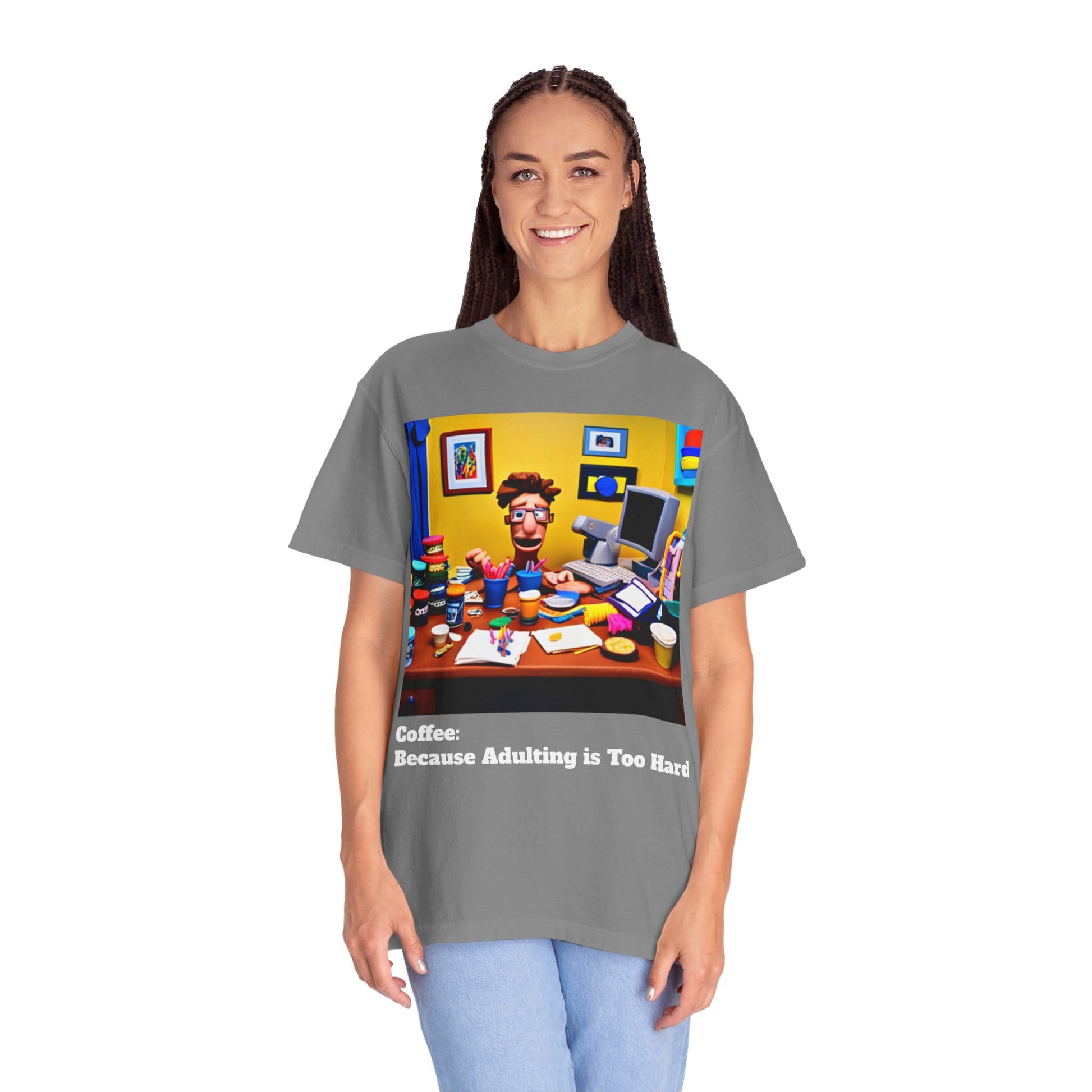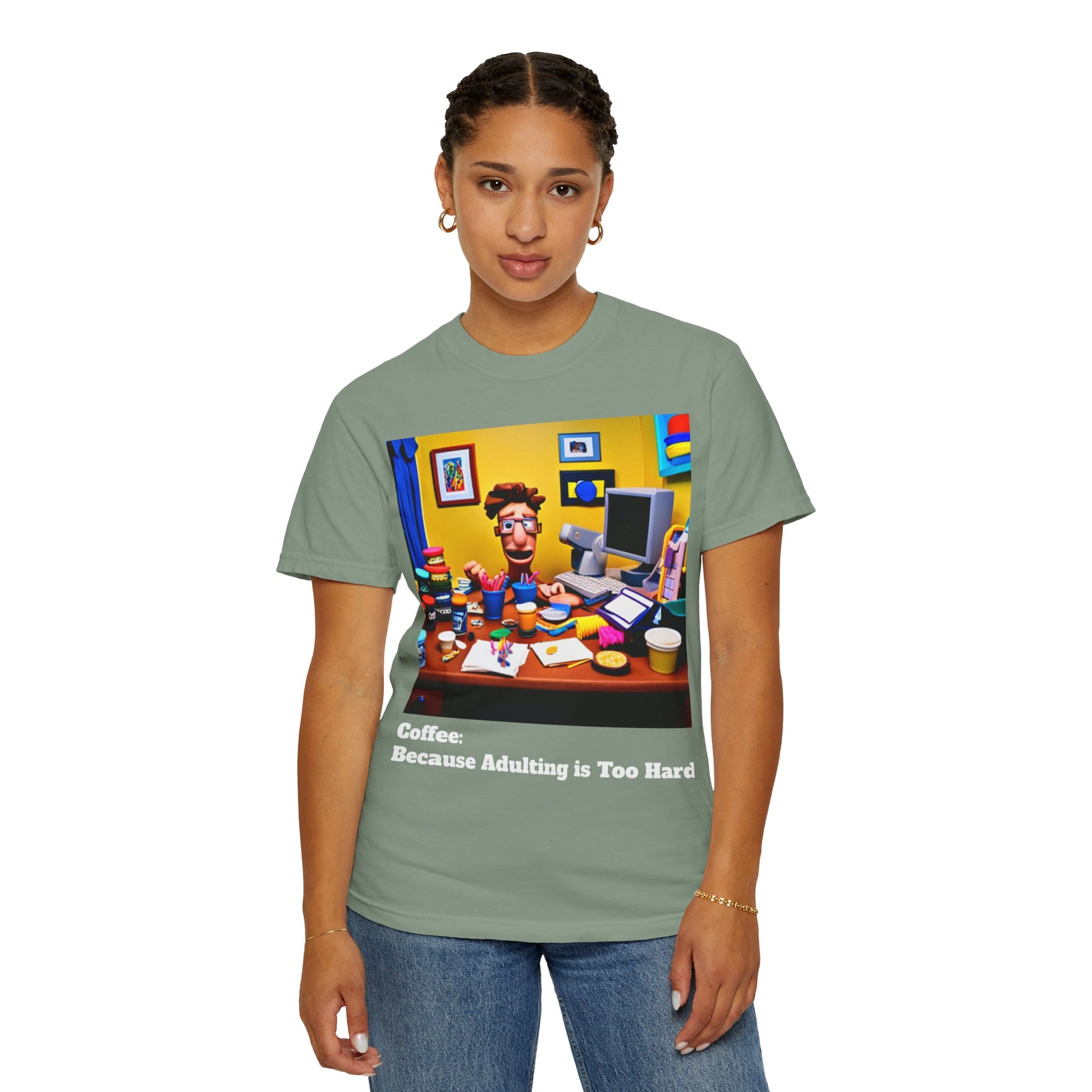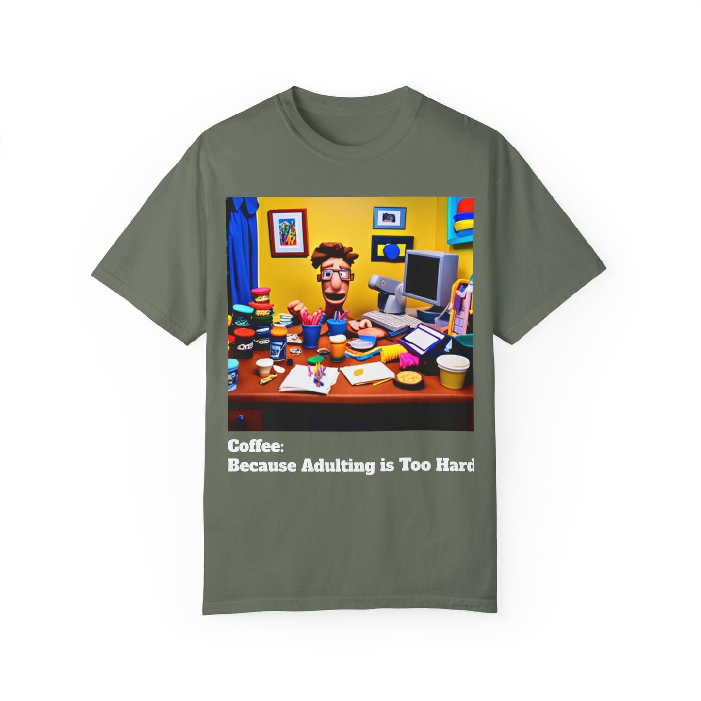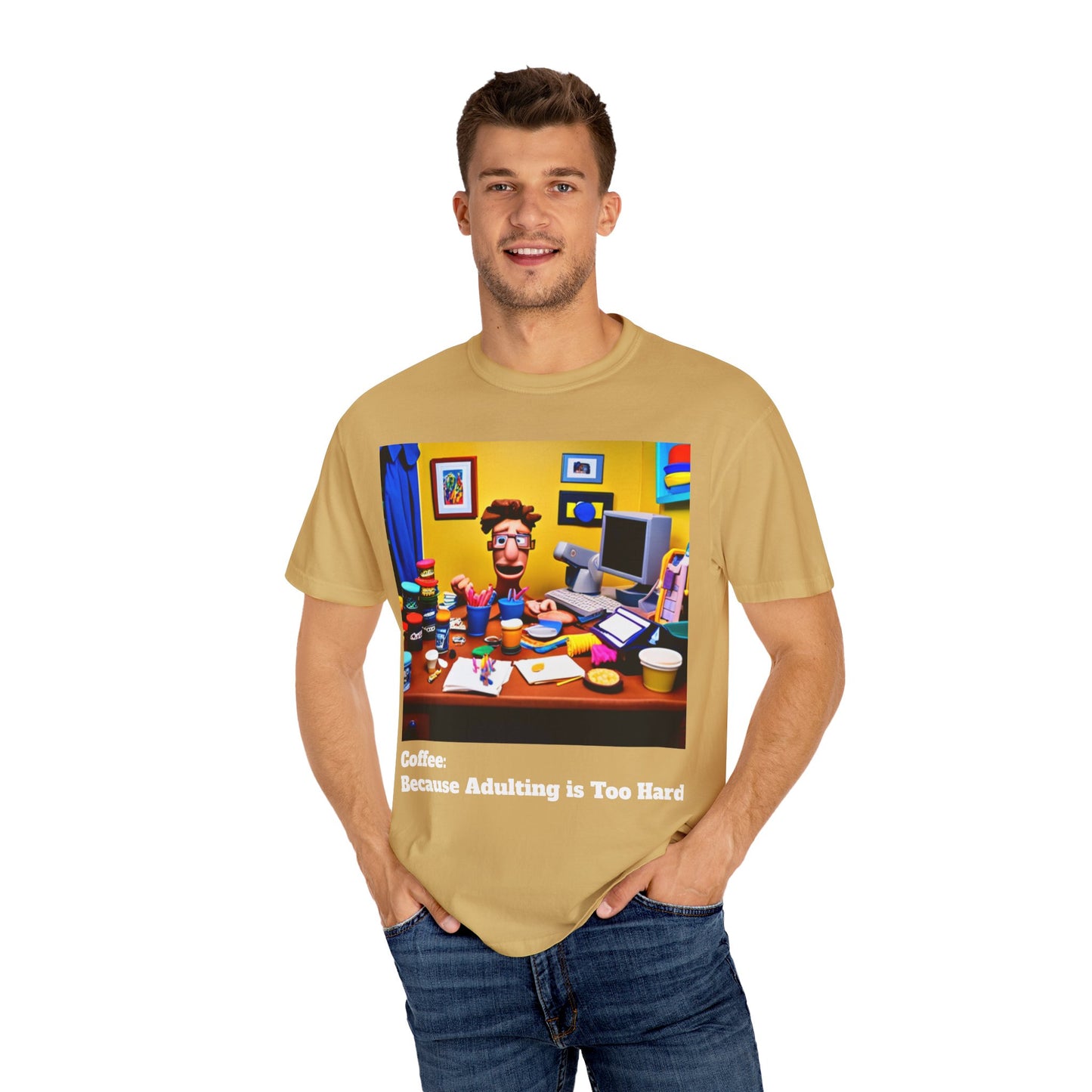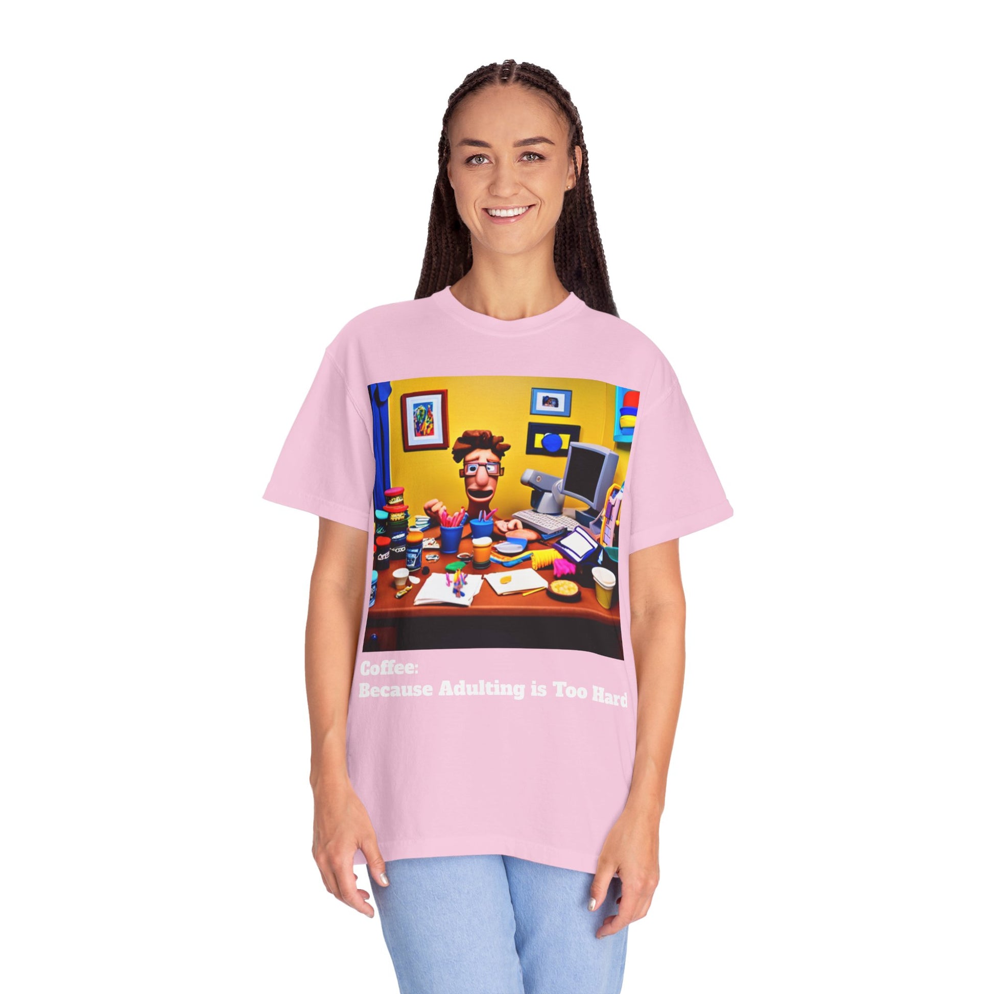 Unisex "Coffee: Because Adulting is Too Hard" Garment-Dyed T-shirt