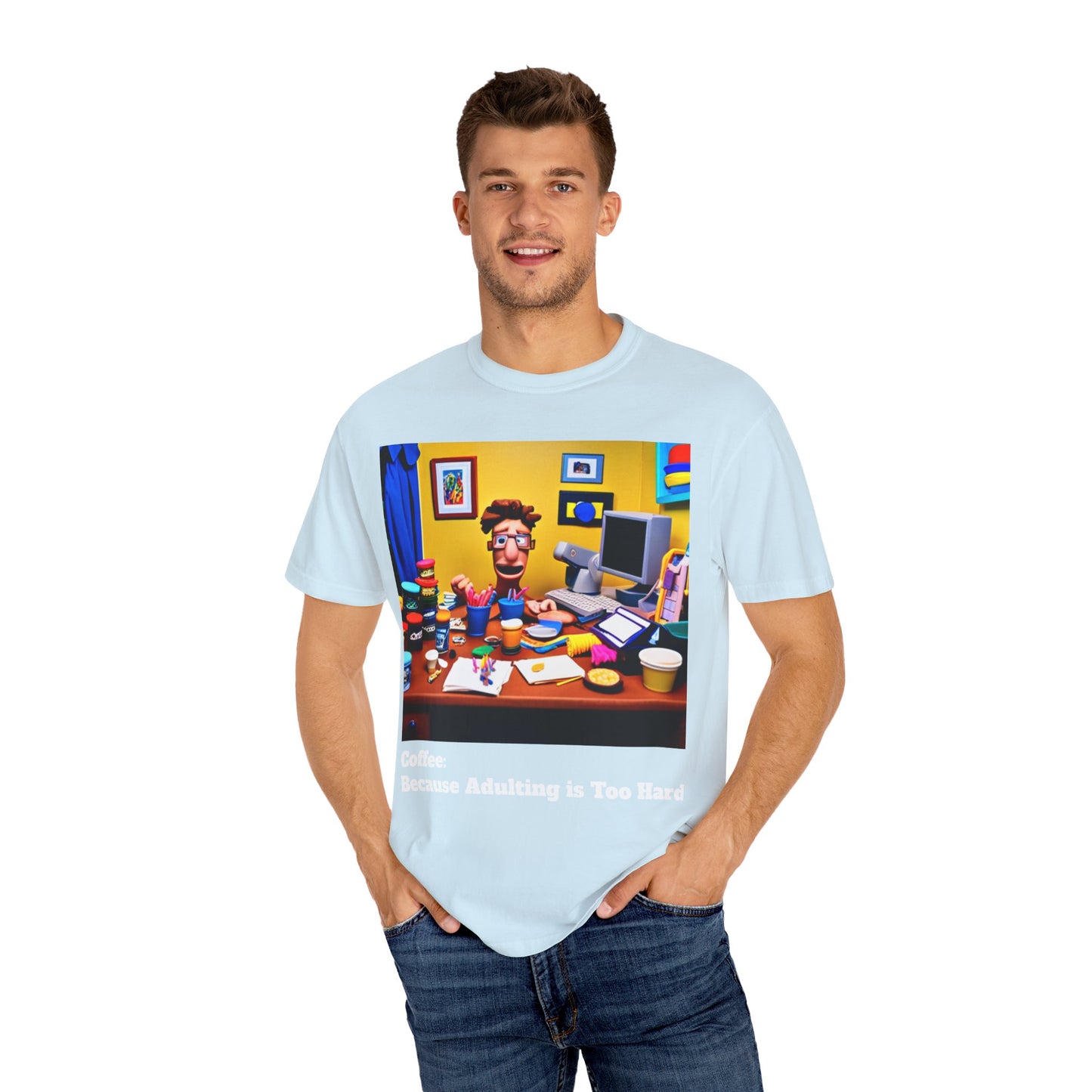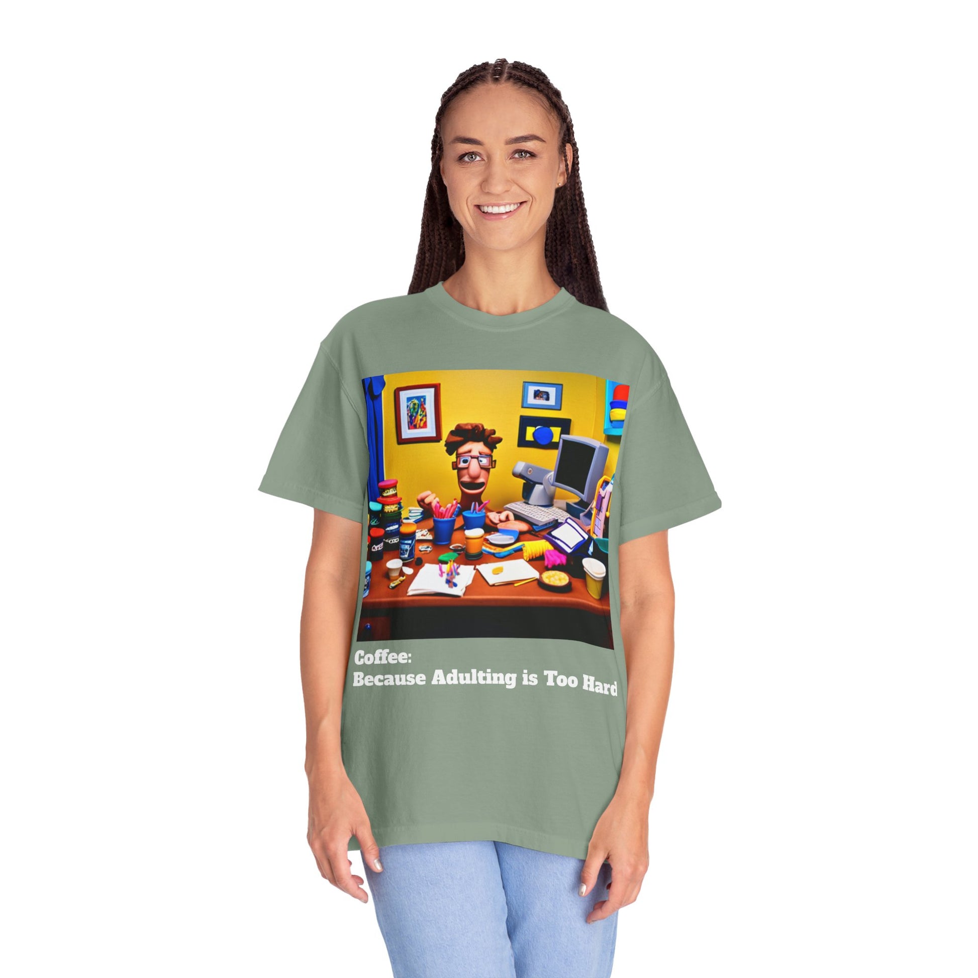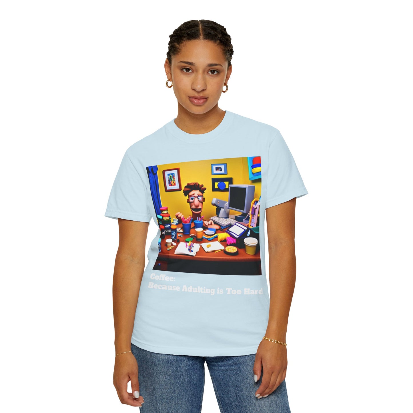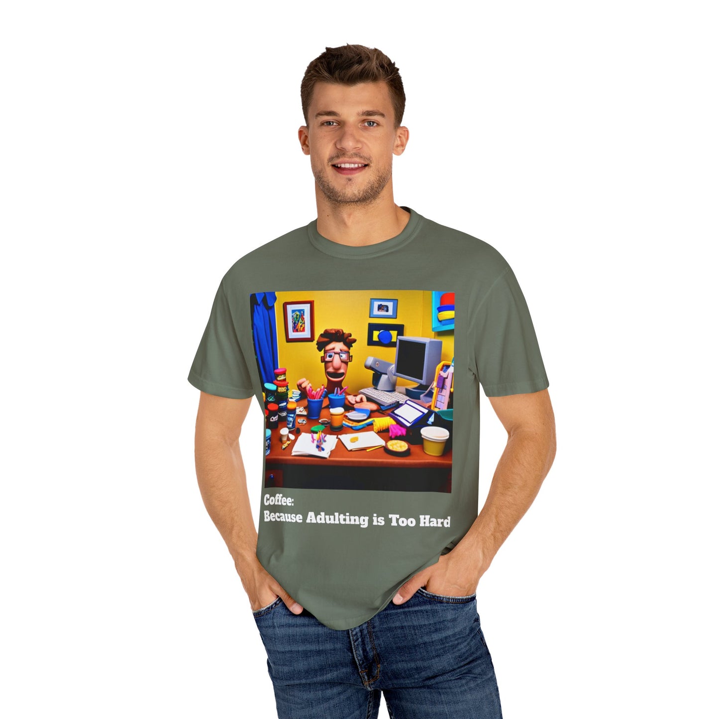 Unisex "Coffee: Because Adulting is Too Hard" Garment-Dyed T-shirt
