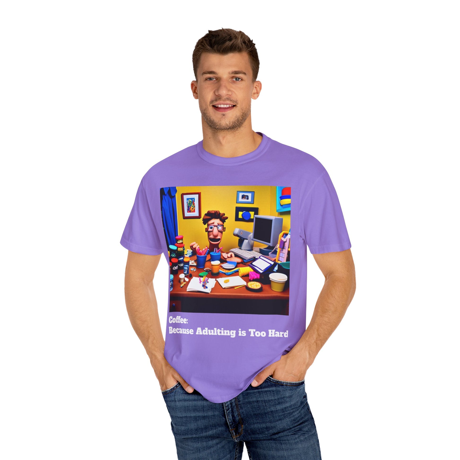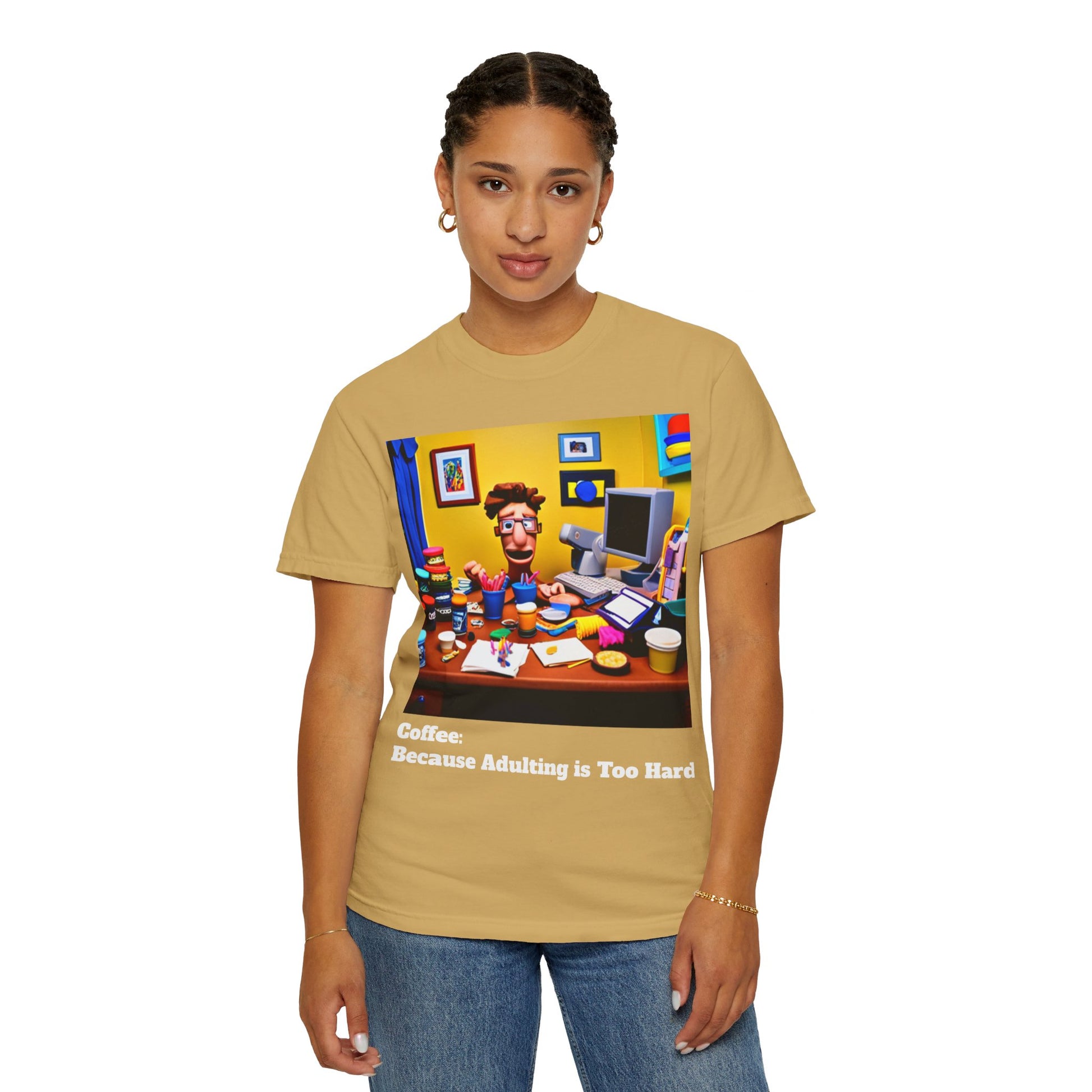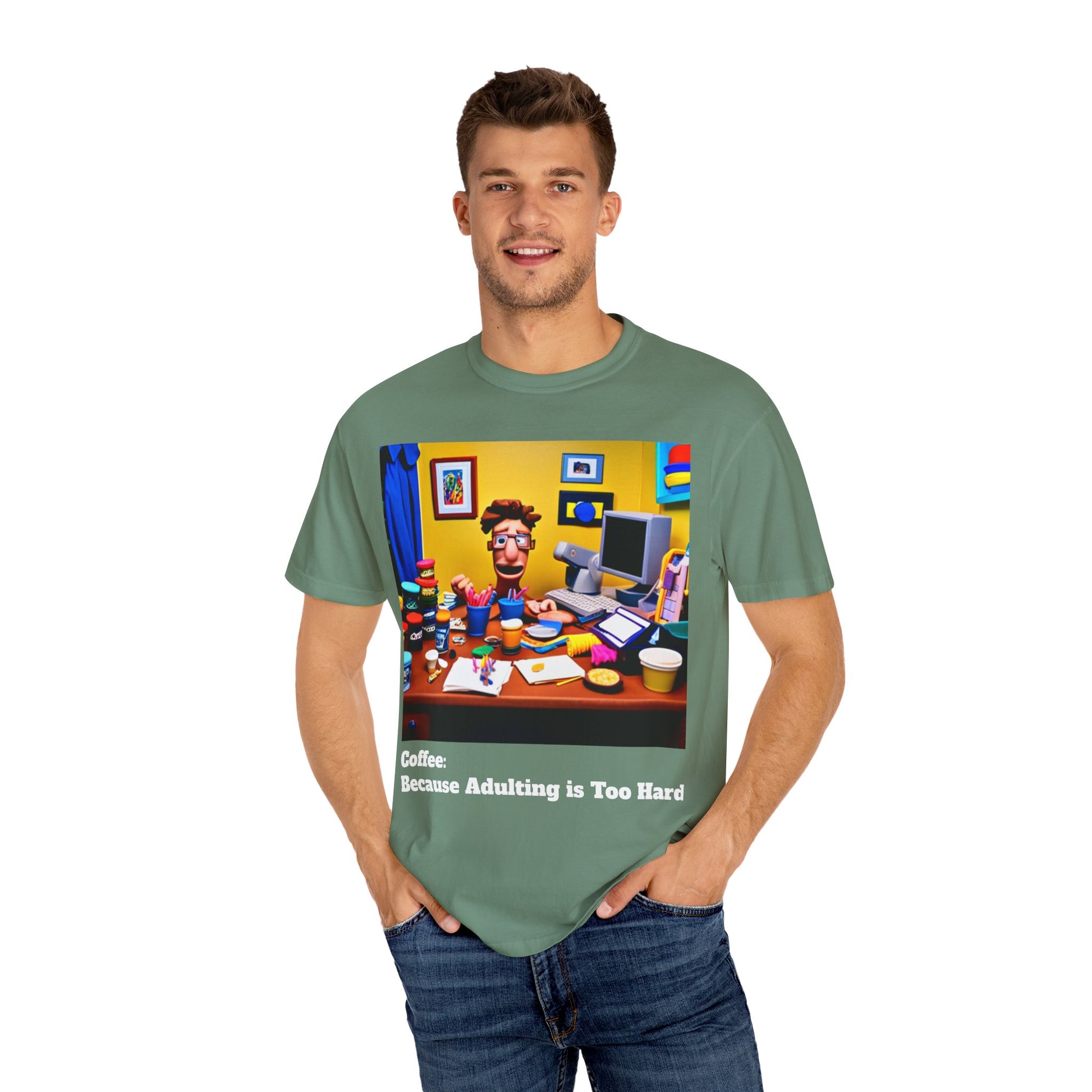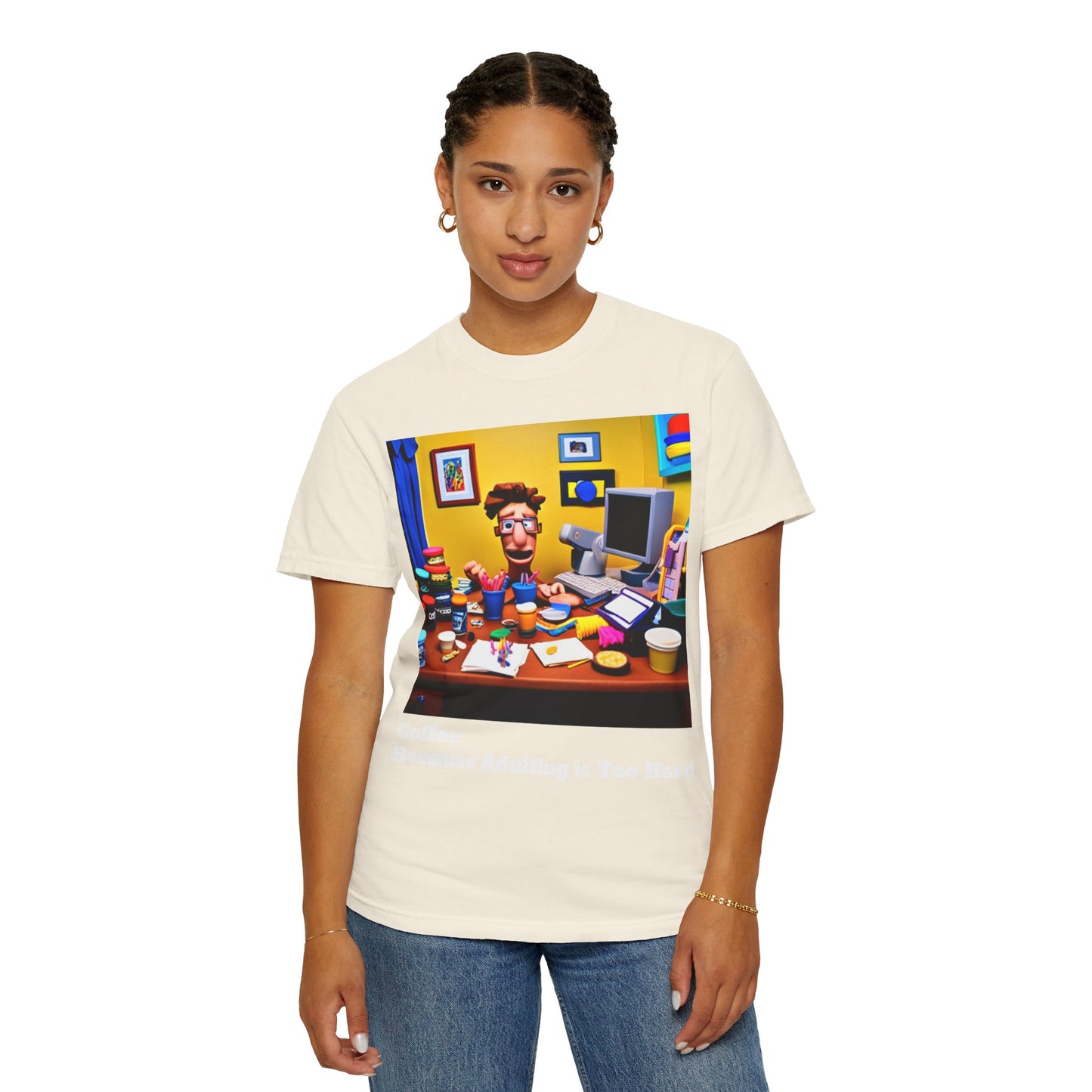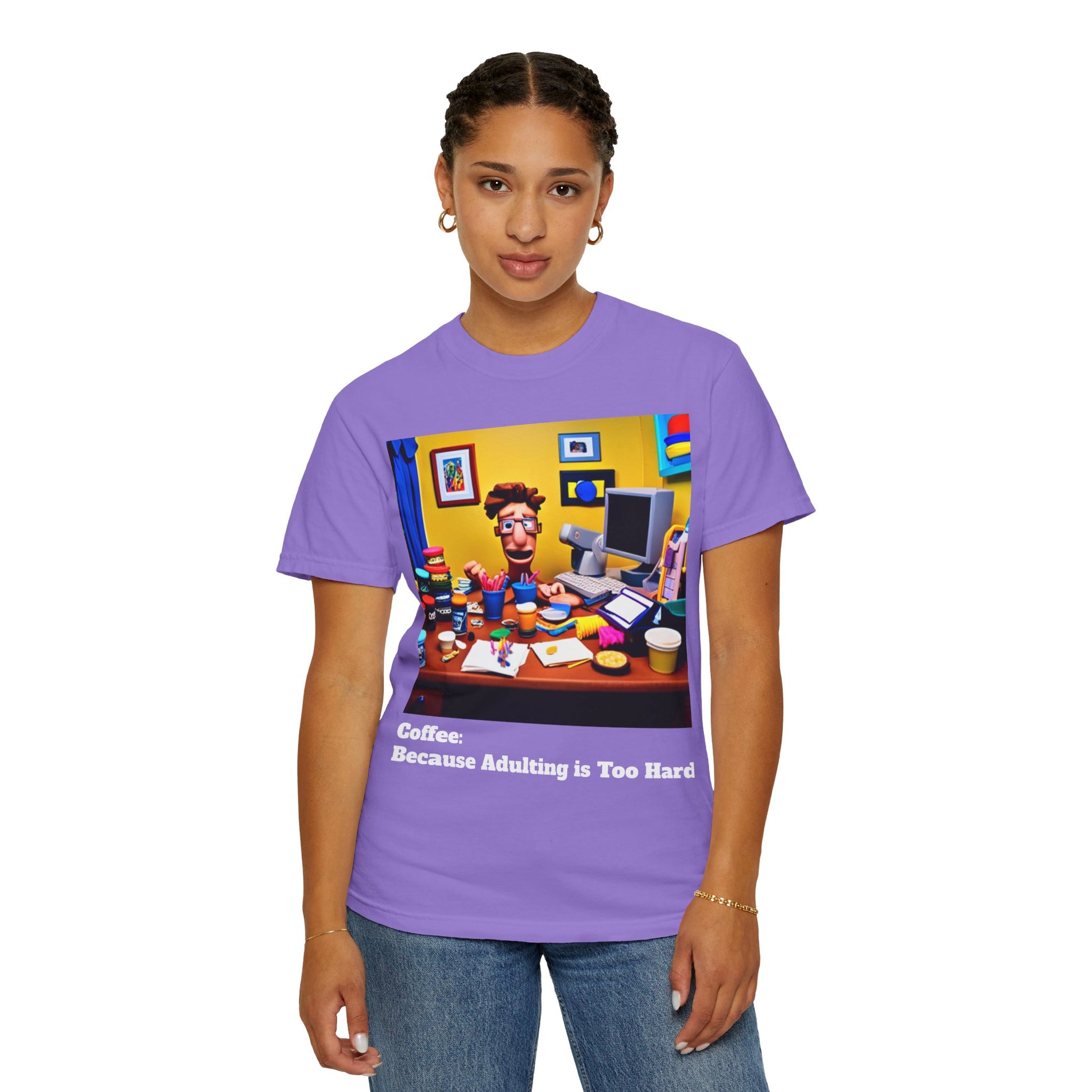 Unisex "Coffee: Because Adulting is Too Hard" Garment-Dyed T-shirt