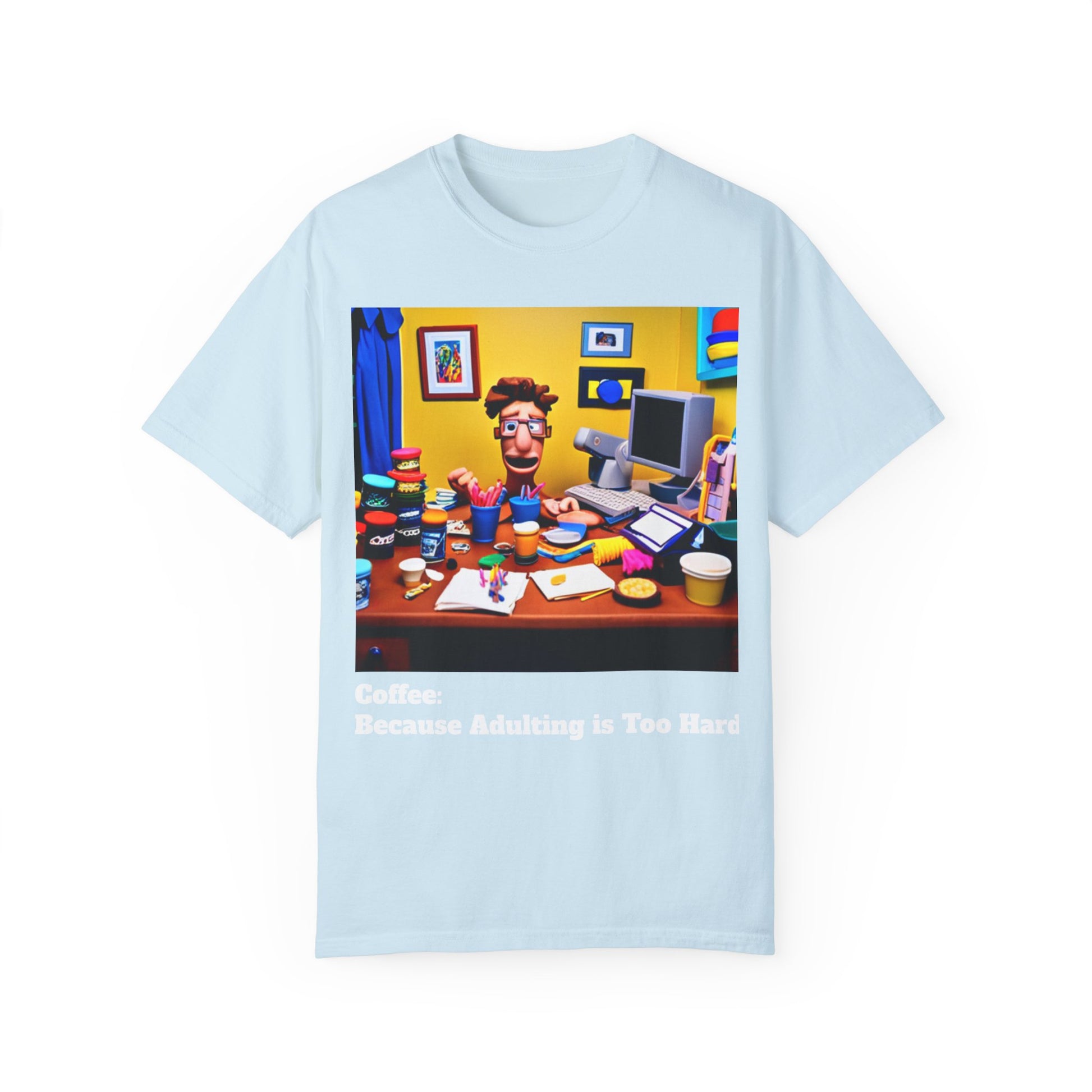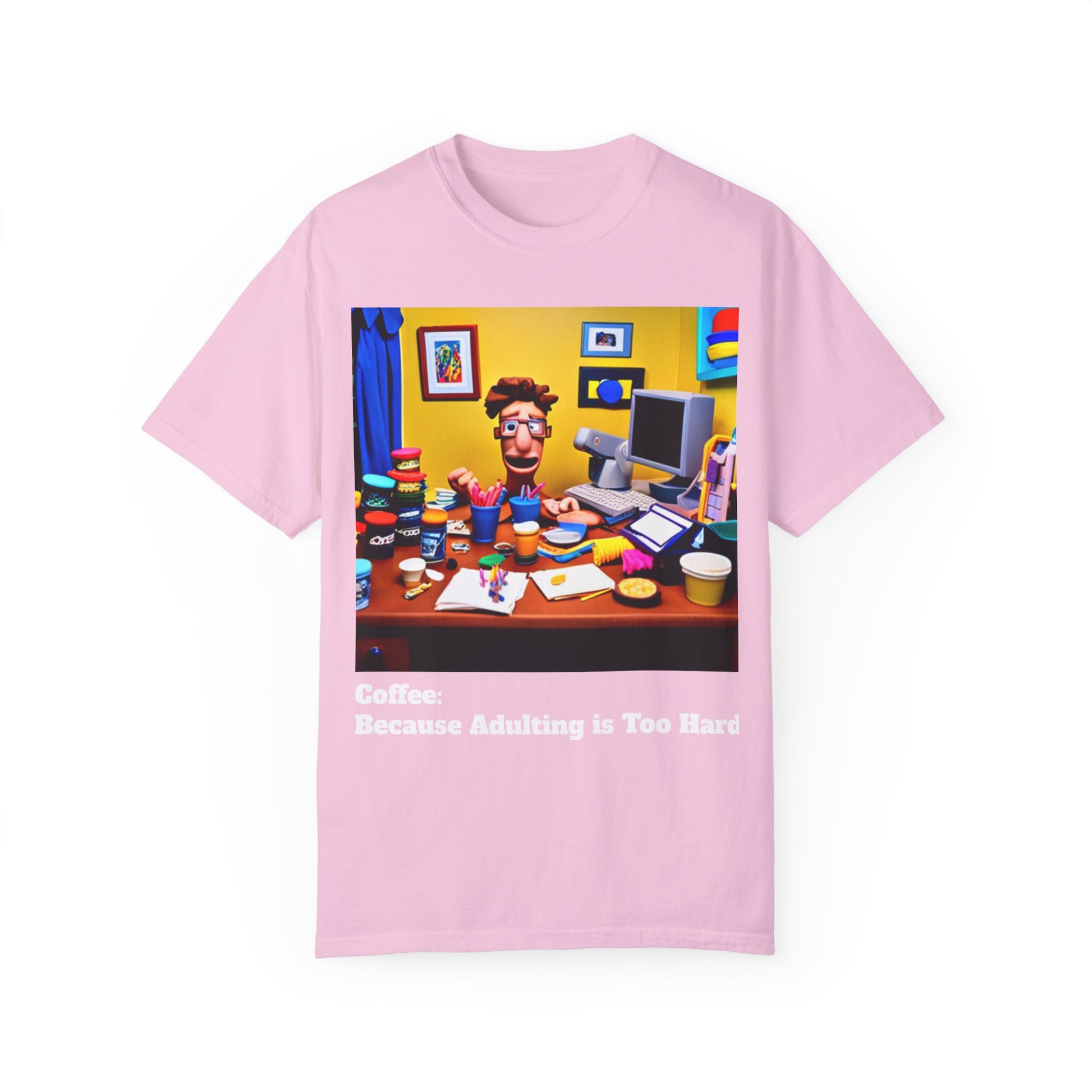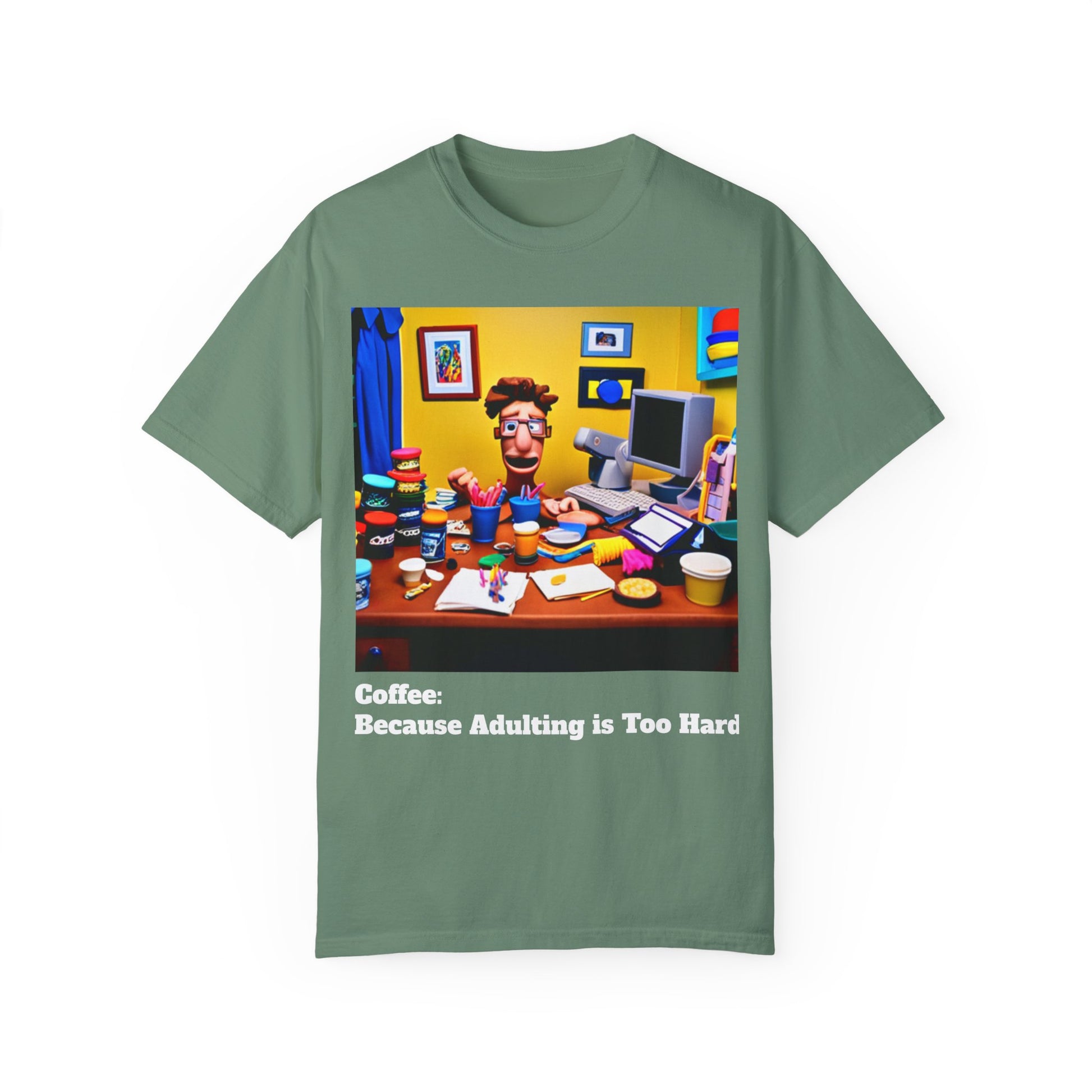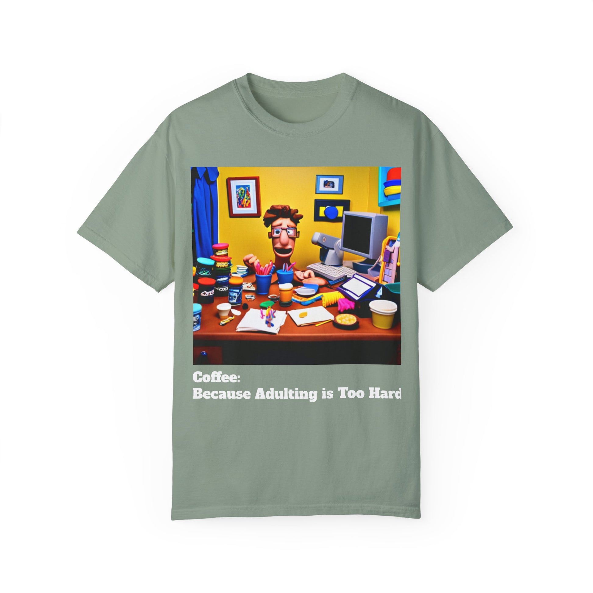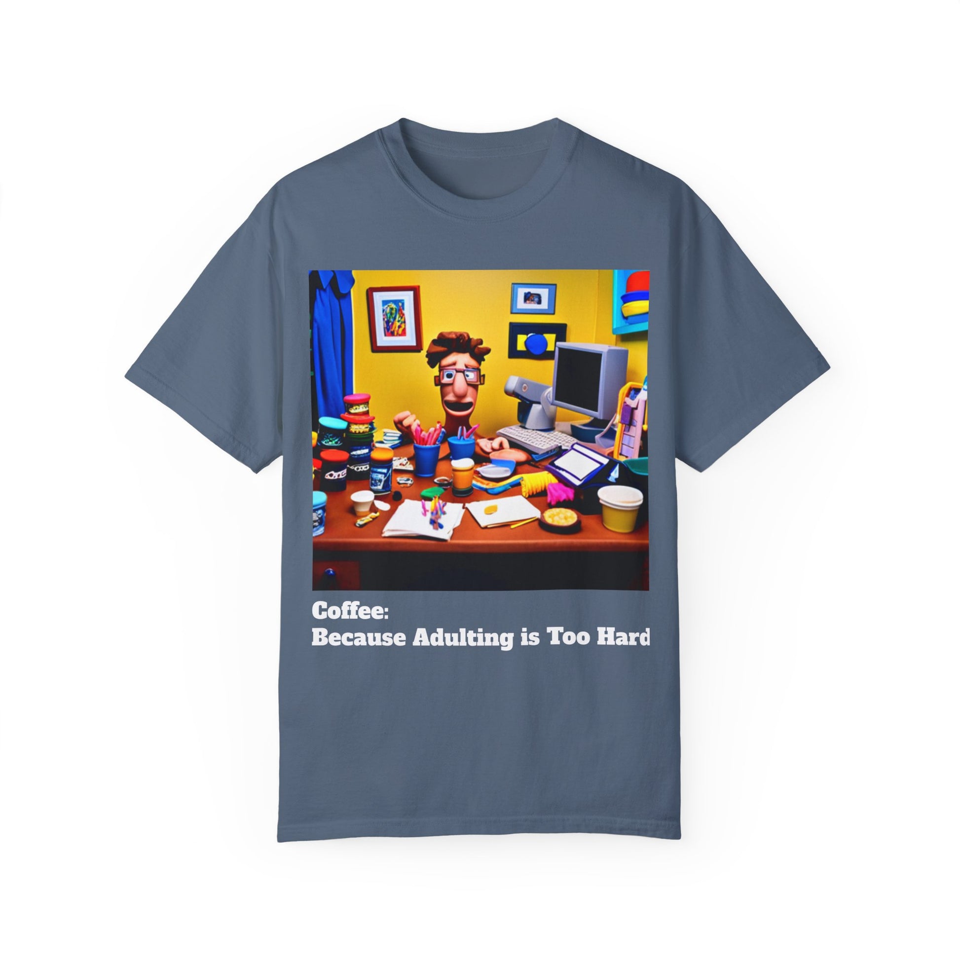 Wake up and wrap yourself in the comfort of our Comfort Colors tee, where every sip of coffee feels like a warm embrace. For those days when adulting seems just too hard, let this shirt be your cozy retreat.