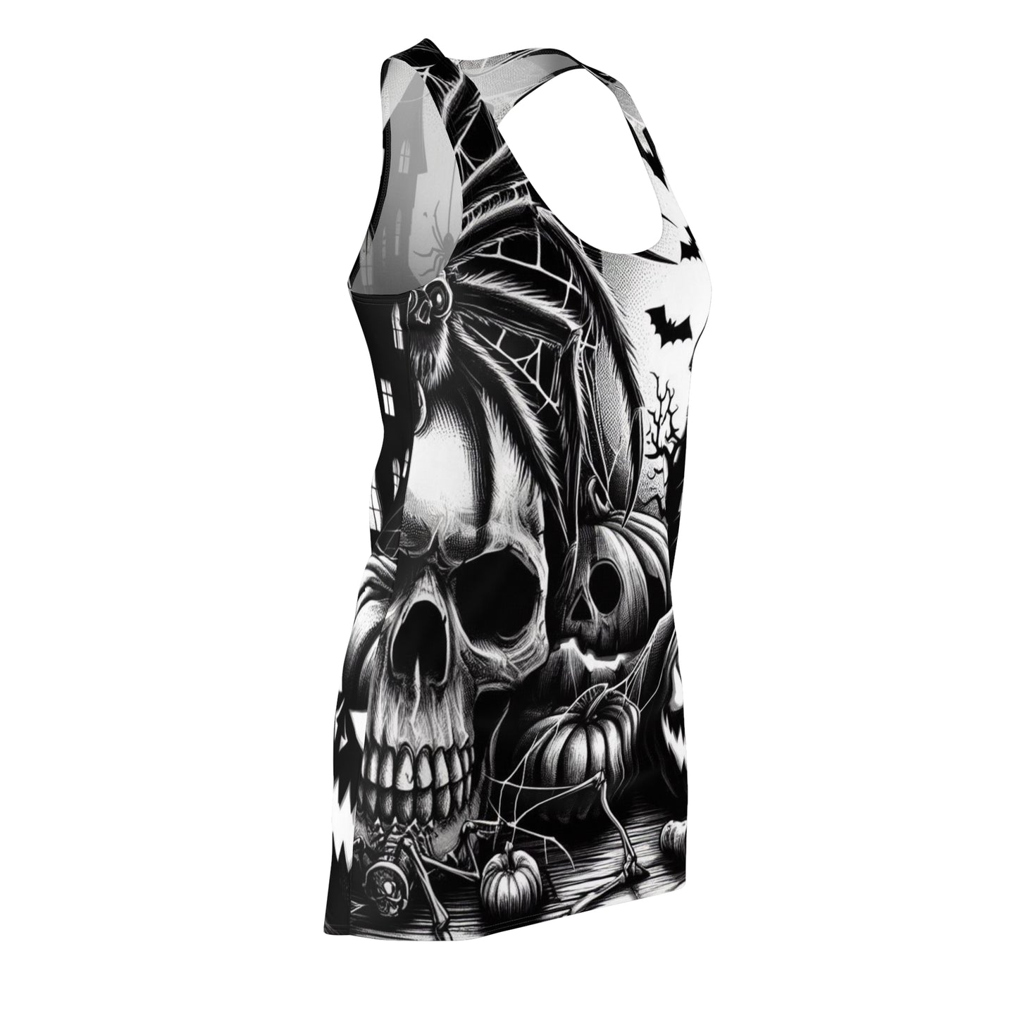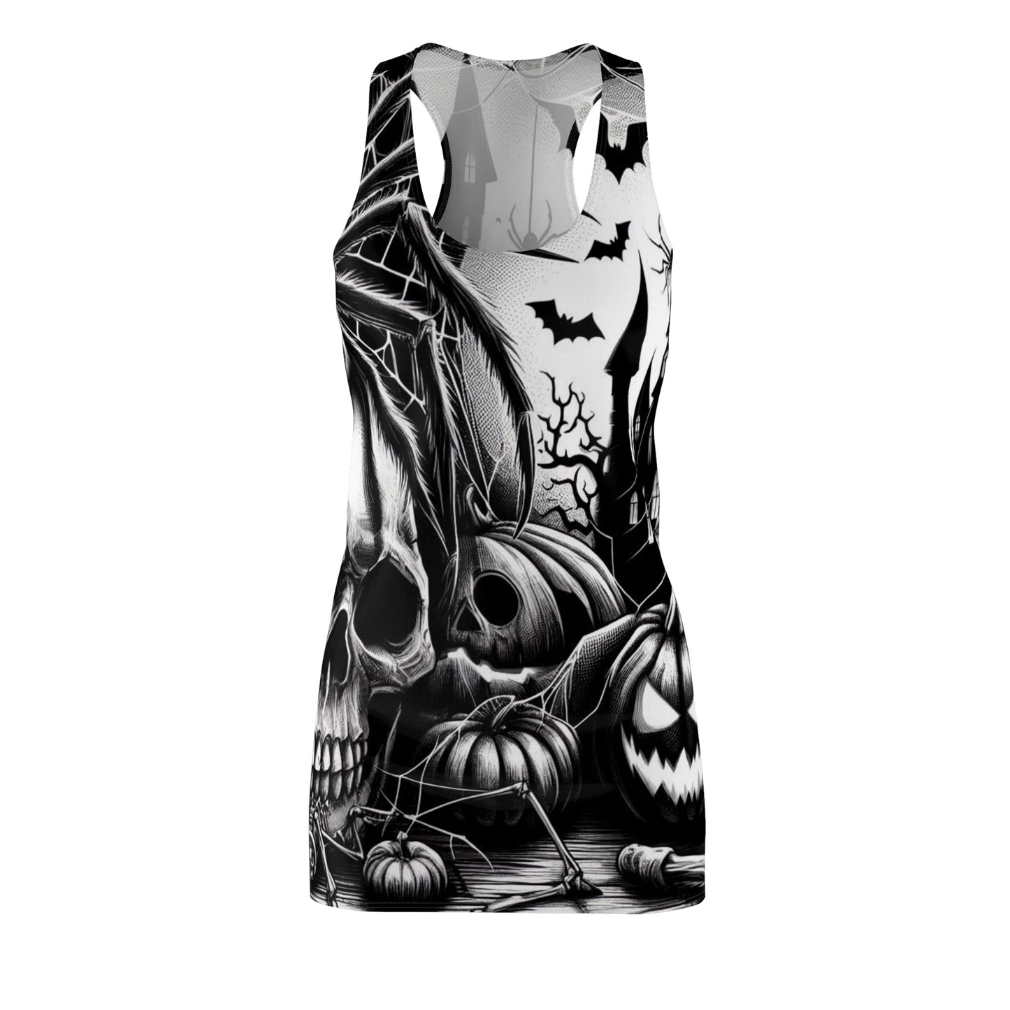 Get ready to turn heads this Halloween with our AOP Racerback Dress. Feminine, stylish, and incredibly comfortable, this dress is perfect for all your spooky festivities. Inspired by the freedom of creativity, it will instantly become your all-time favorite.