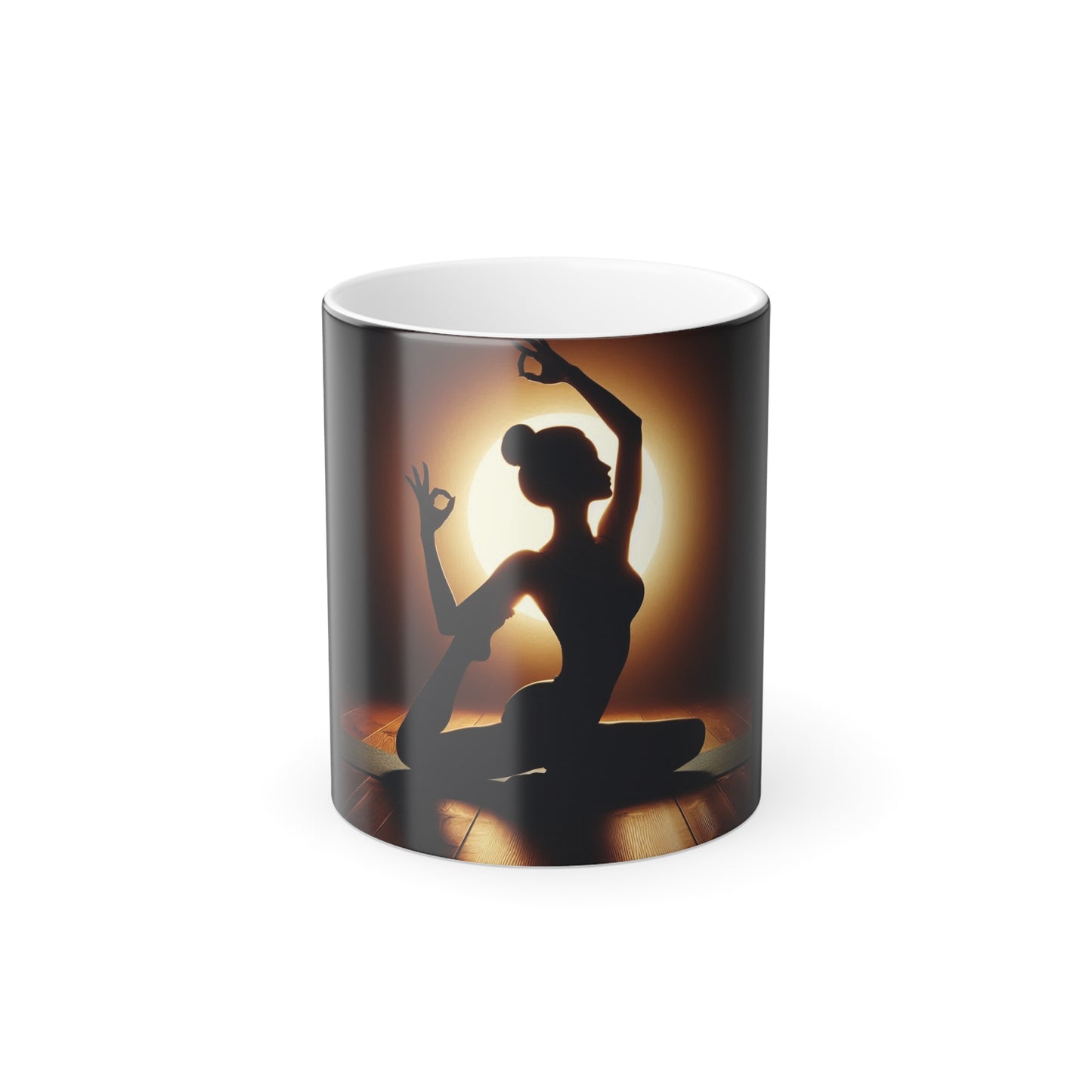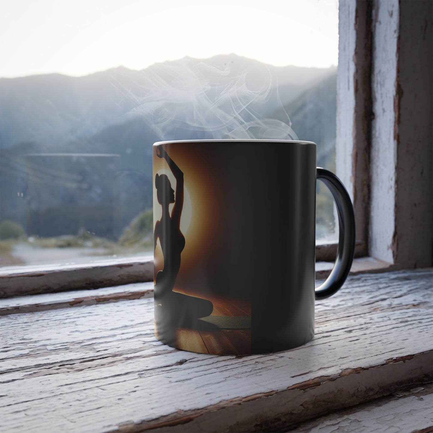 Our "Yoga Pose" mugs are super popular gifts for friends and loved ones. This one changes color and will be the gift that keeps on giving. The heat-reactive surface reveals the "Yoga Pose" design once the mug gets warm. The ceramic cup will go back to its original black outside and white inside when it cools down. The C-shaped handle helps keep a sturdy grip. It comes in one size – 11oz (0.33l) – plenty for that big morning cup of coffee.